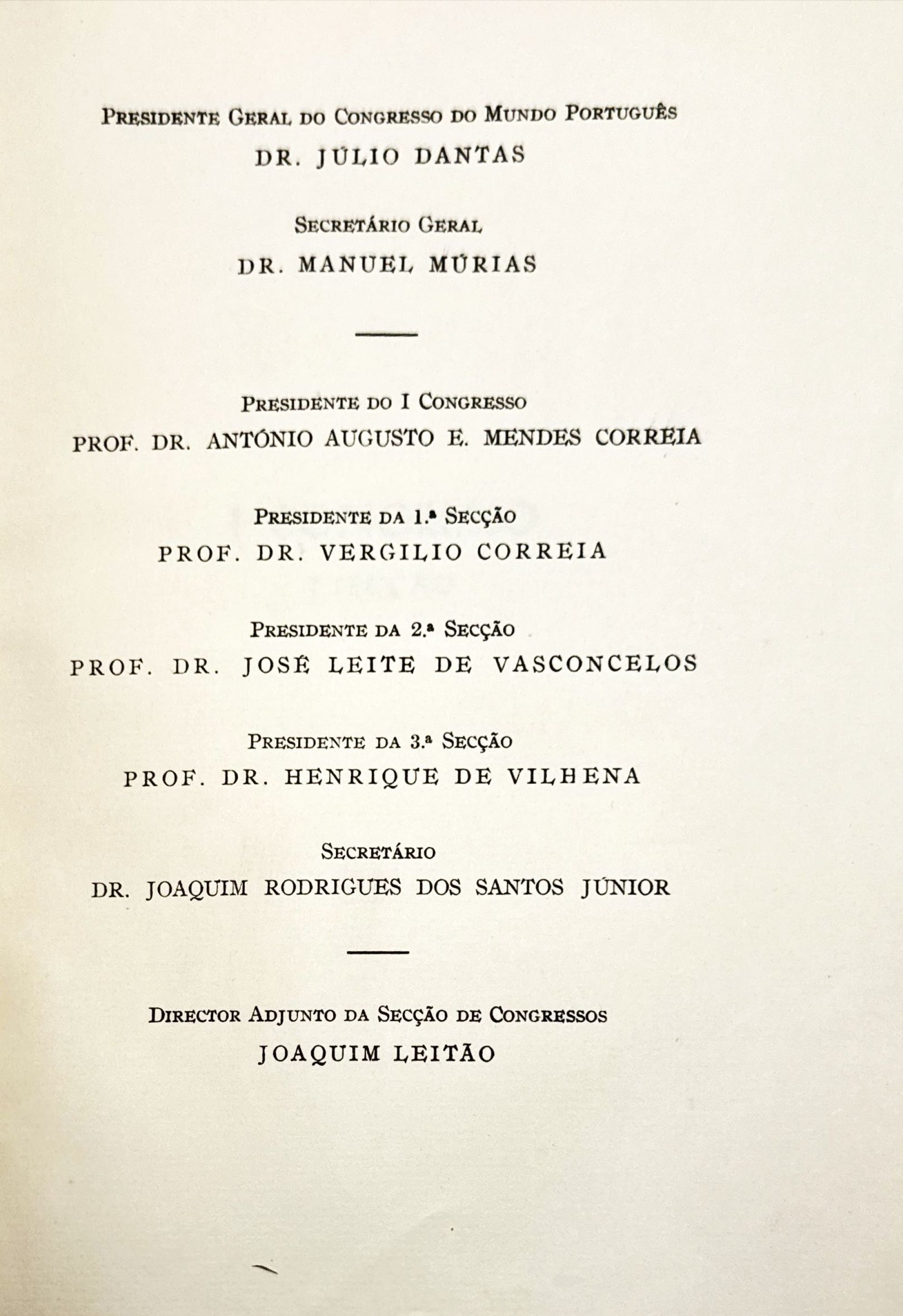 CONGRESSO DO MUNDO PORTUGUÊS. Secção de Congressos. 1940. Volume I (ao XIX).