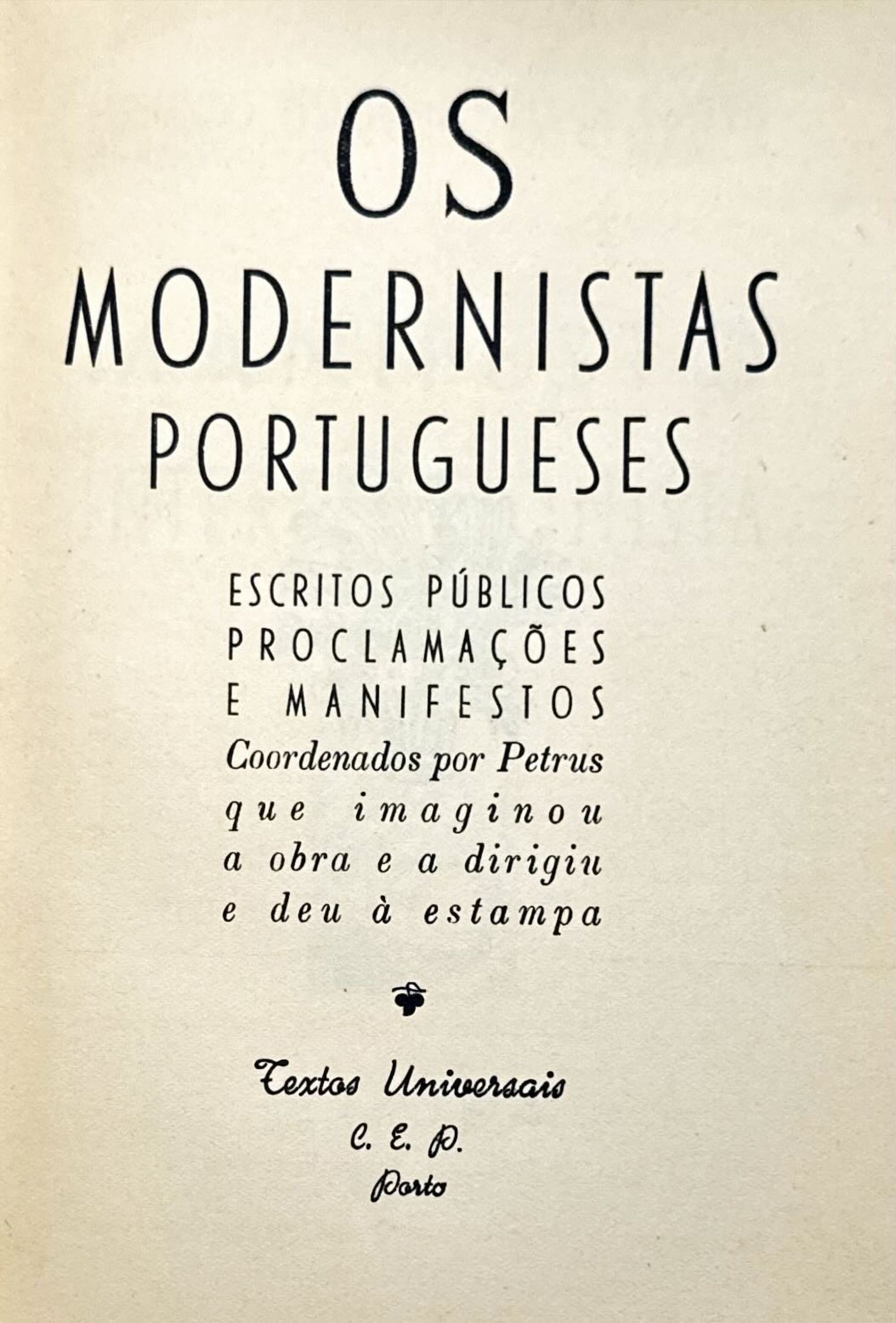 VEIGA, Pedro. - OS MODERNISTAS PORTUGUESES. Escritos públicos, proclamações e manifestos, coordenados por Petrus que imaginou a obra e a dirigiu e deu à estampa. Vol. I (ao VI).