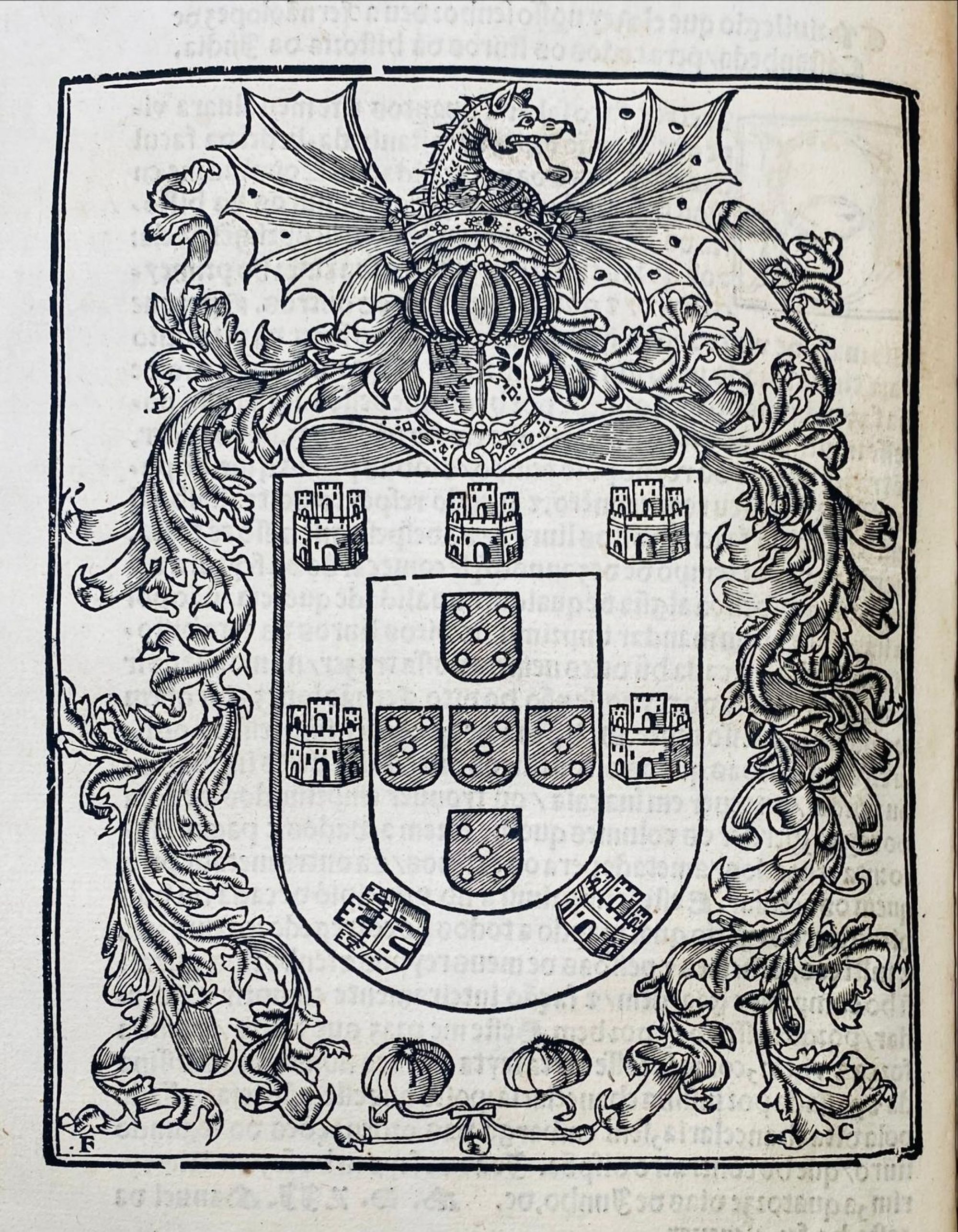 Primeira edição desta valiosa e raríssima coleção quinhentista. É apenas o volume cinco da coleção composta por oito volumes. Frontispício com uma bela portada arquitetónica. Ilustrado na página seguinte da licença com uma gravura com o brasão de armas de Portugal. Muito raro de aparecer no mercado, a última aparição desta obra foi em 2015, embora também incompleta. Encadernação da época em carneira com o titulo manuscrito na lombada.