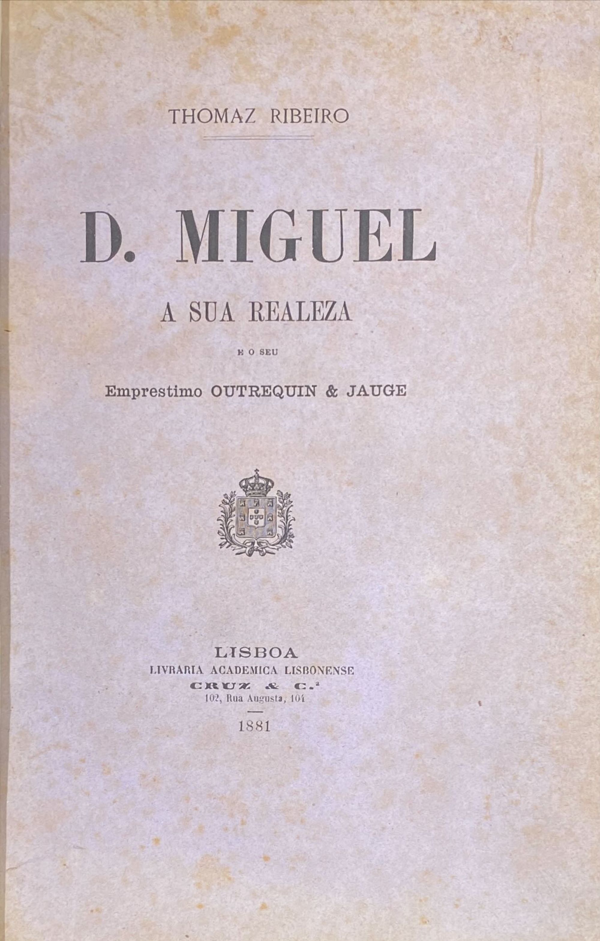 RIBEIRO, Thomaz. - D. MIGUEL A SUA REALEZA E O SEU EMPRESTIMO OUTREQUIN & JAUGE. Estudo critico, historico e juridico por um deputado da nação portugueza.