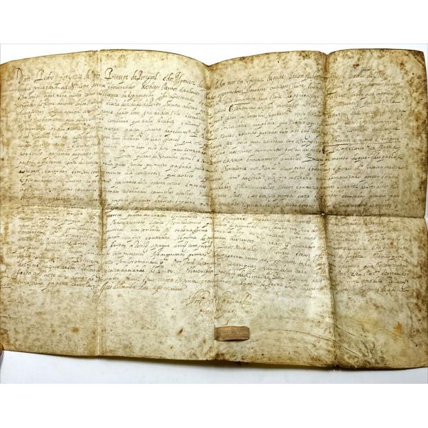 Manuscrito em pergaminho em nome de D. Pedro assinada por Dr. João de Carvalho Henriques. Conserva apenas parte da fita. Dobrado e com sinais de uso.