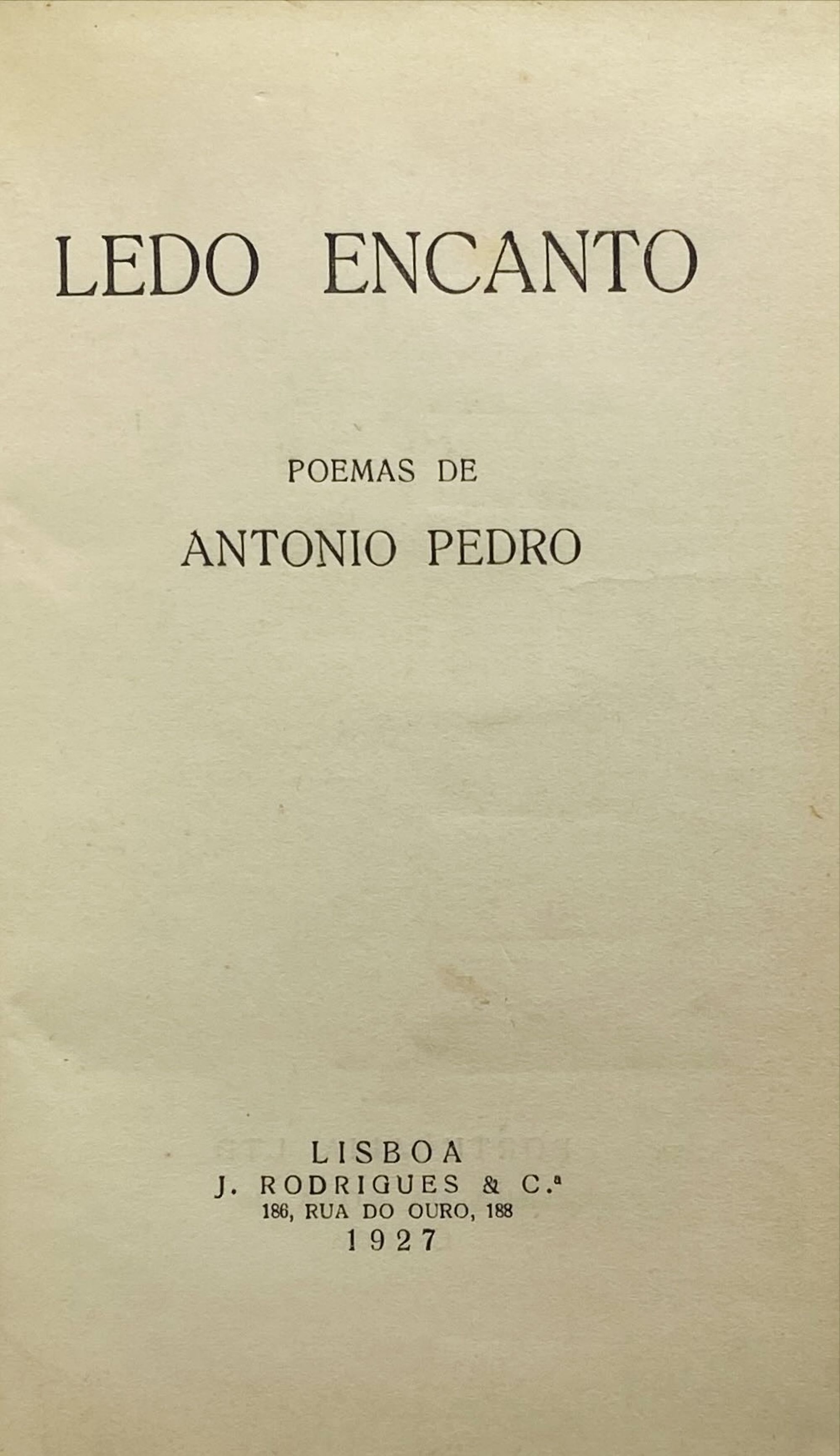 PEDRO, António. - LEDO ENCANTO. Poemas. Lisboa. Portugália. 1927. In-8º de 58, [1] págs. Enc.
