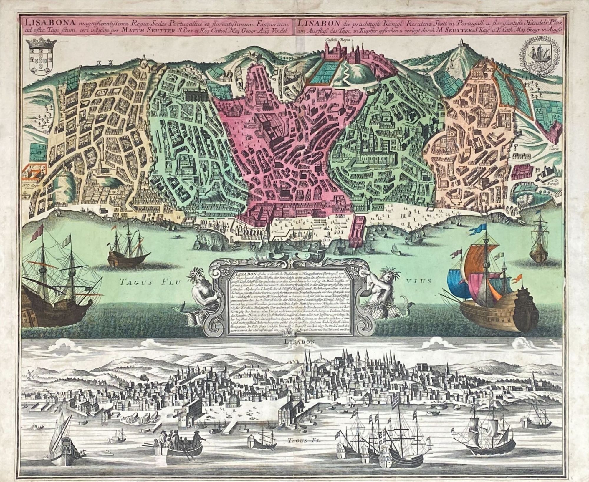 MAPA. SEUTTER. - LISBONA magnificentissima Regia sedes Portugalliæ et florentißimum Emporium ad ostia Tagi situm.