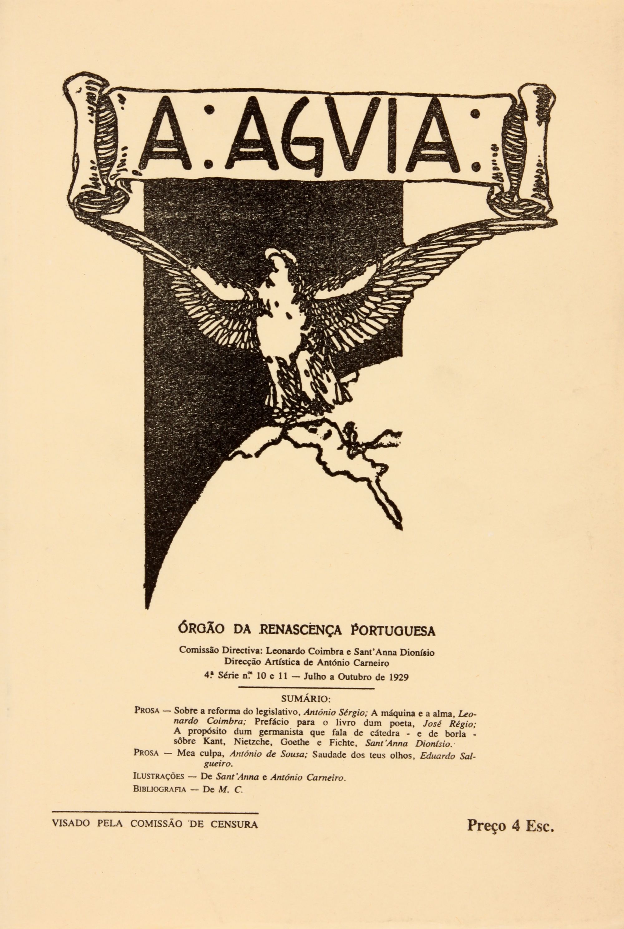 ÁGUIA (A). Órgão da Renascença Portuguesa. Nº 10/11 da 4ª série. Porto. Empreza Industrial Gráfica. 1929. In-8º de 273 a 314 págs. Br.