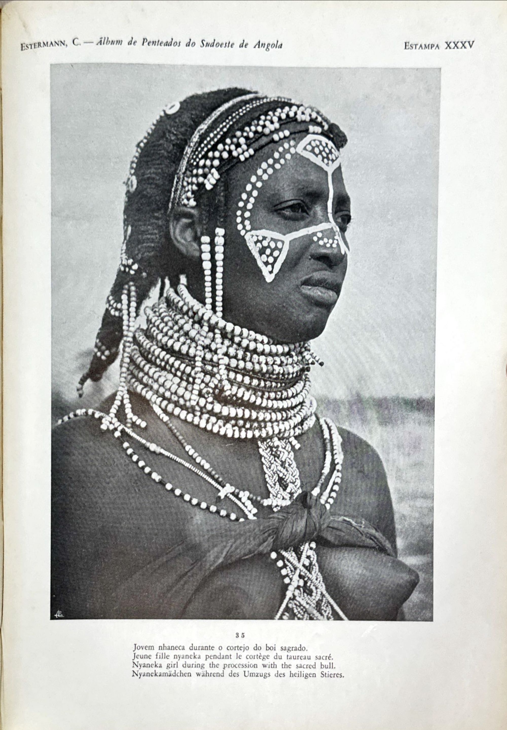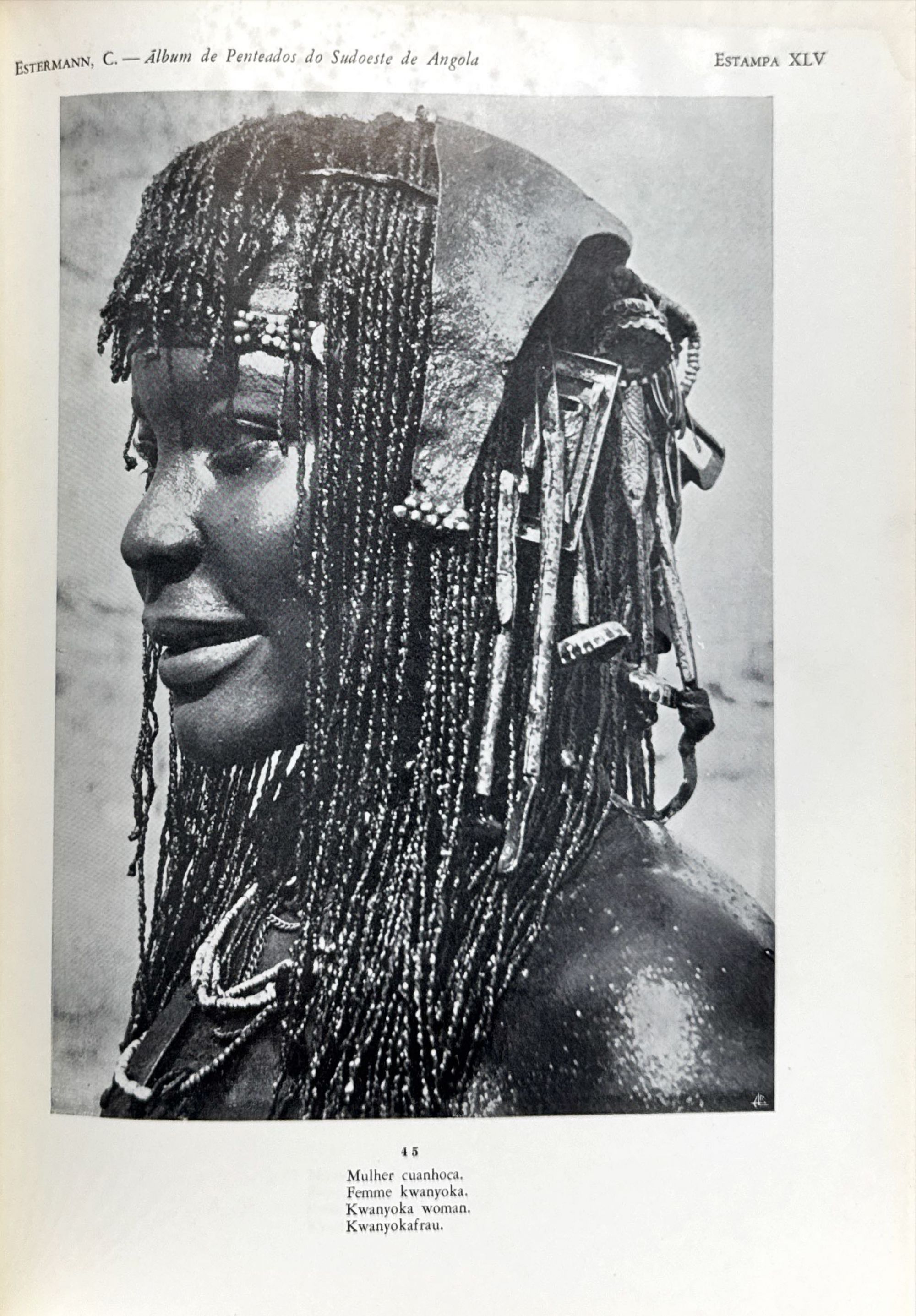ESTERMANN, Padre Carlos. - ALBUM DE PENTEADOS DO SUDOESTE DE ANGOLA. Lisboa. 1960. In-4º de 37 págs. e LIV estampas.