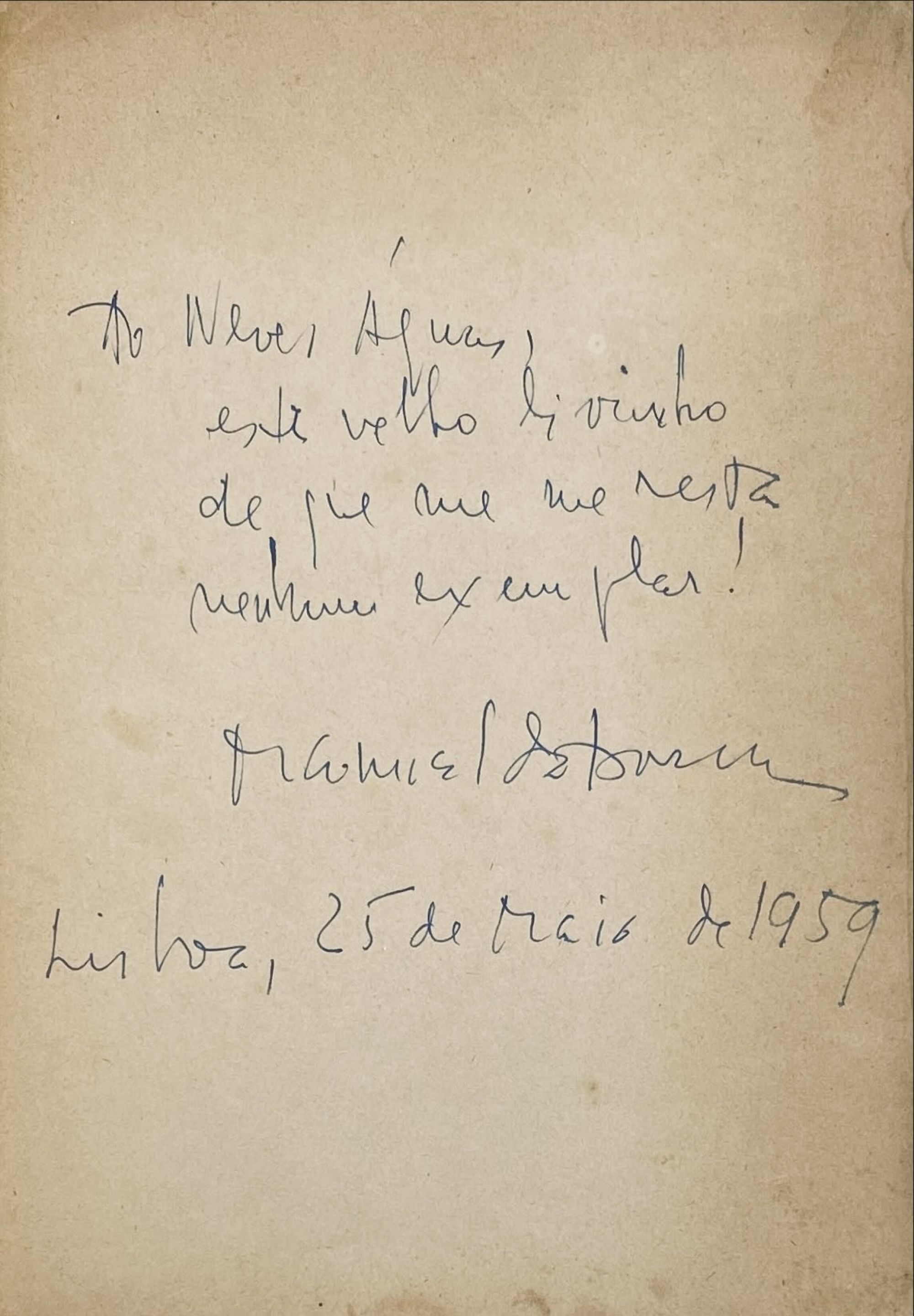 Primeira edição deste Raro livro de poemas. Valorizada com dedicatória autografa do autor. O desenho de Manuel Ribeiro de Pavia vem desenhado na capa de brochura da frente. Encadernação em sintético, com capas.