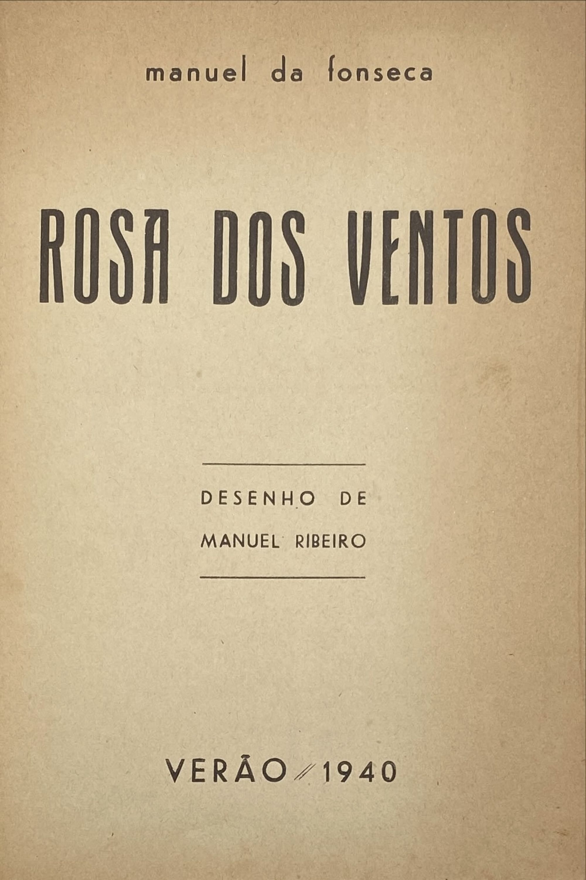 FONSECA, Manuel da. - ROSA DOS VENTOS. Desenhos de Manuel Ribeiro. Verão de 1940. Lisboa. Imprensa Baroeth. 1940. In-4º de [4], 71, [V] págs. Enc.