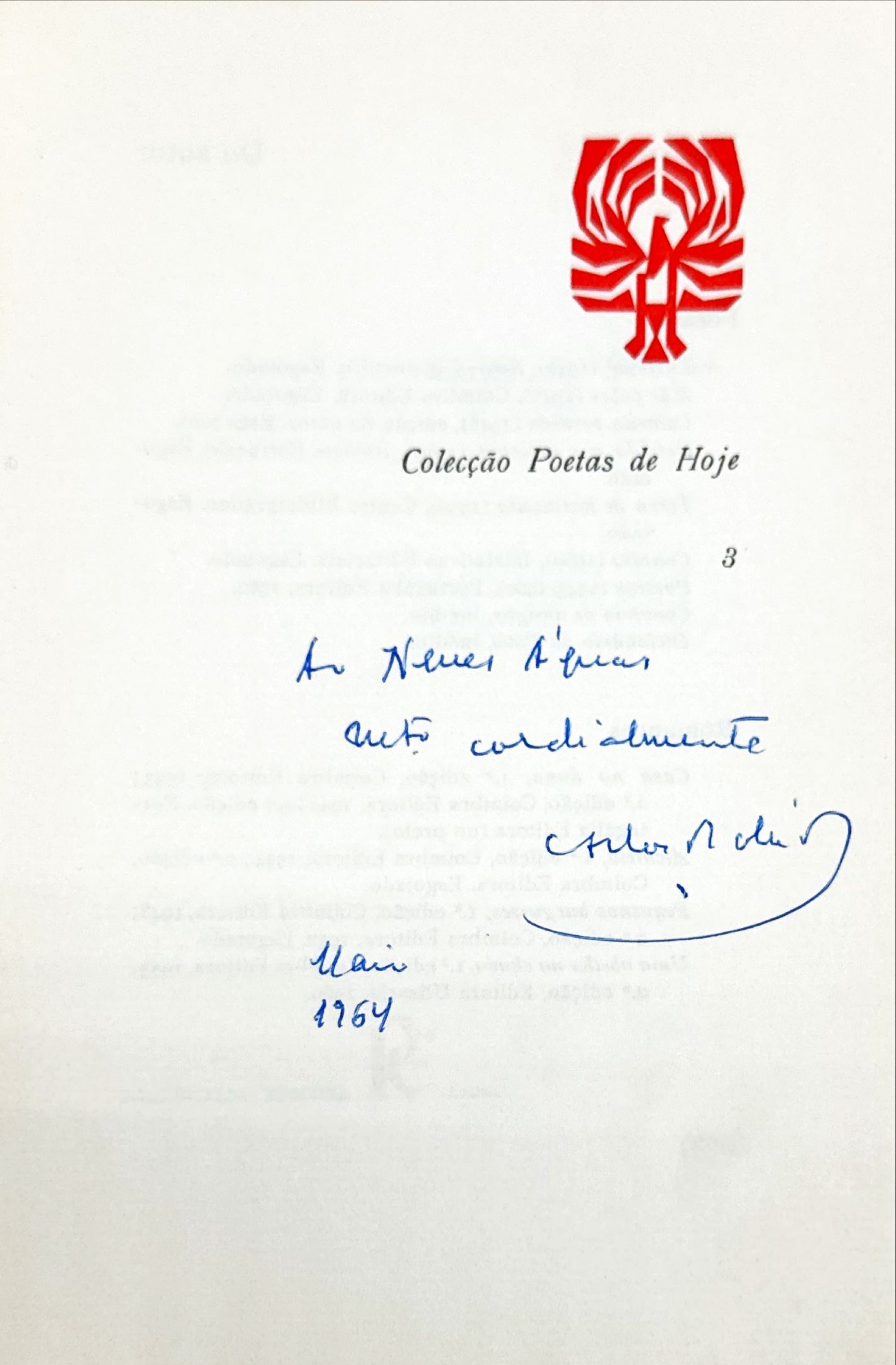 Primeira edição, inserida na coleção “Poetas de Hoje”. Valorizada com dedicatória autografa do autor.