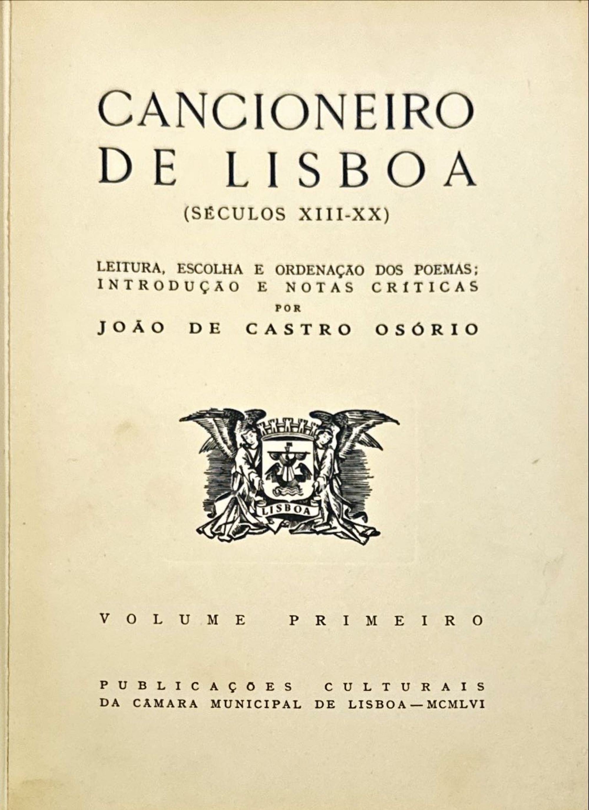 OSÓRIO, João de Castro. - CANCIONEIRO DE LISBOA. (Séculos XIII-XX). Leitura, escolha, e ordenação dos poemas; introdução e notas críticas por...Volume I (ao III).