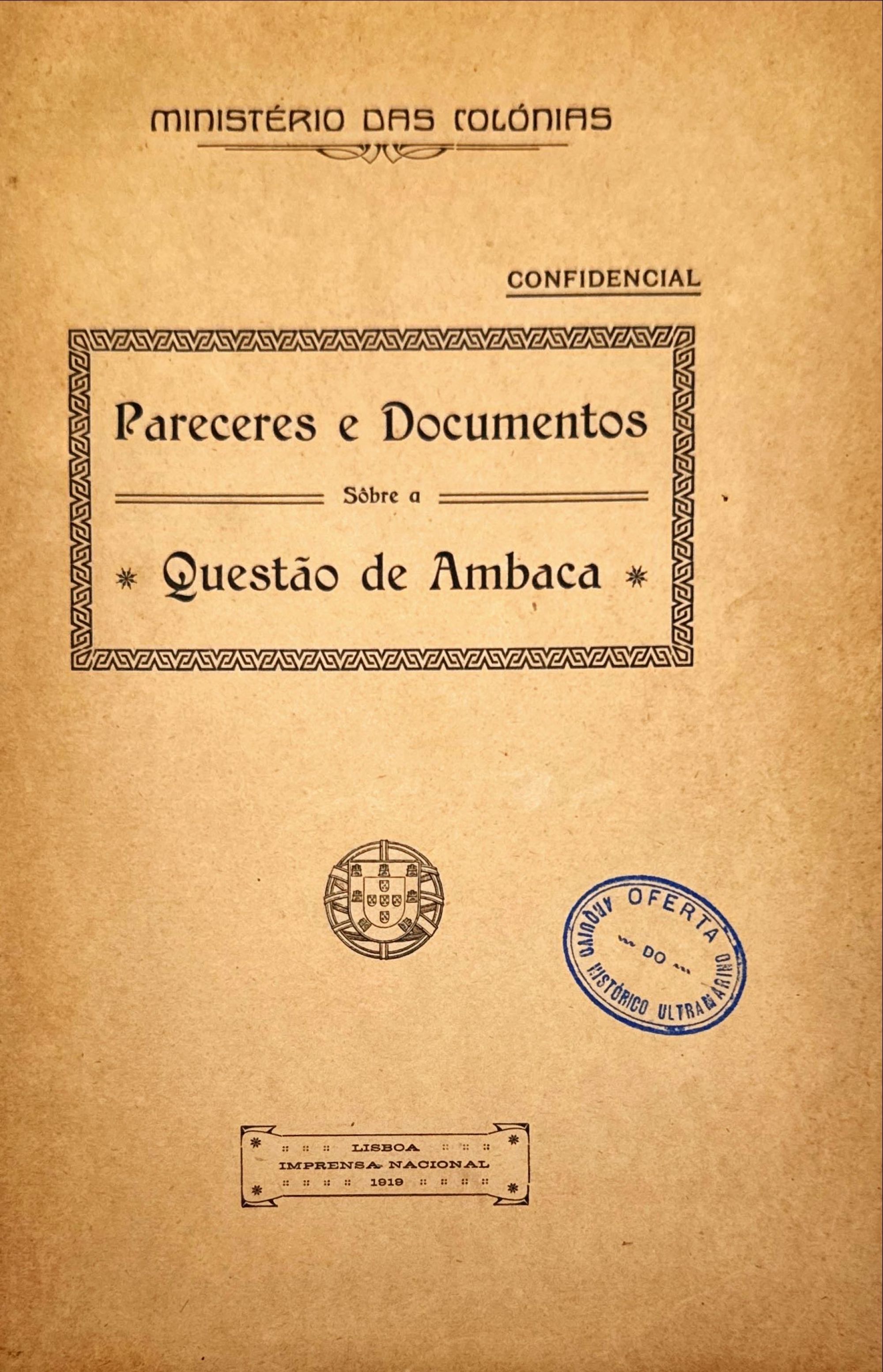 PARECERES E DOCUMENTOS SÔBRE A QUESTÃO DE AMBACA. Ministério das Colónias. Confidencial.