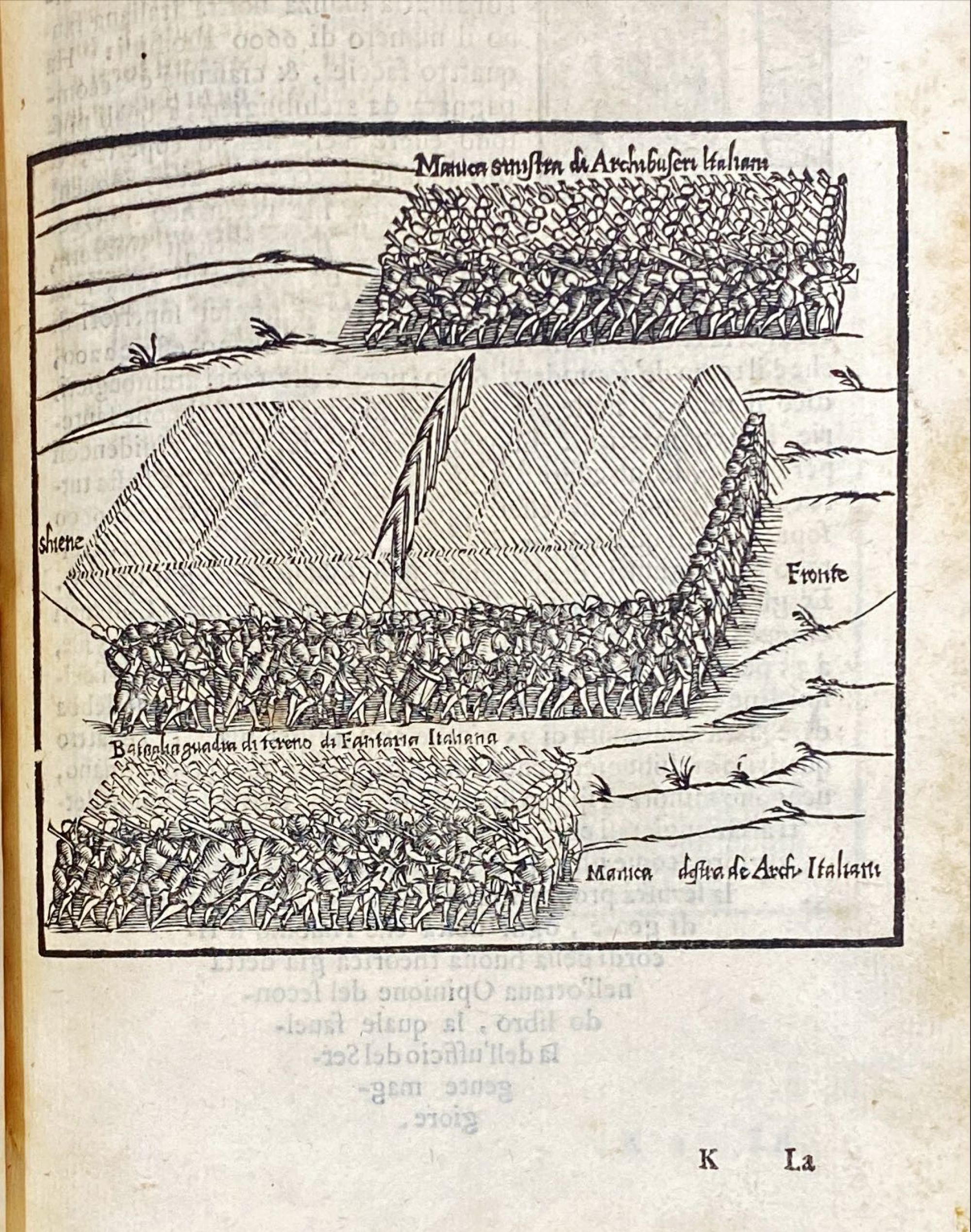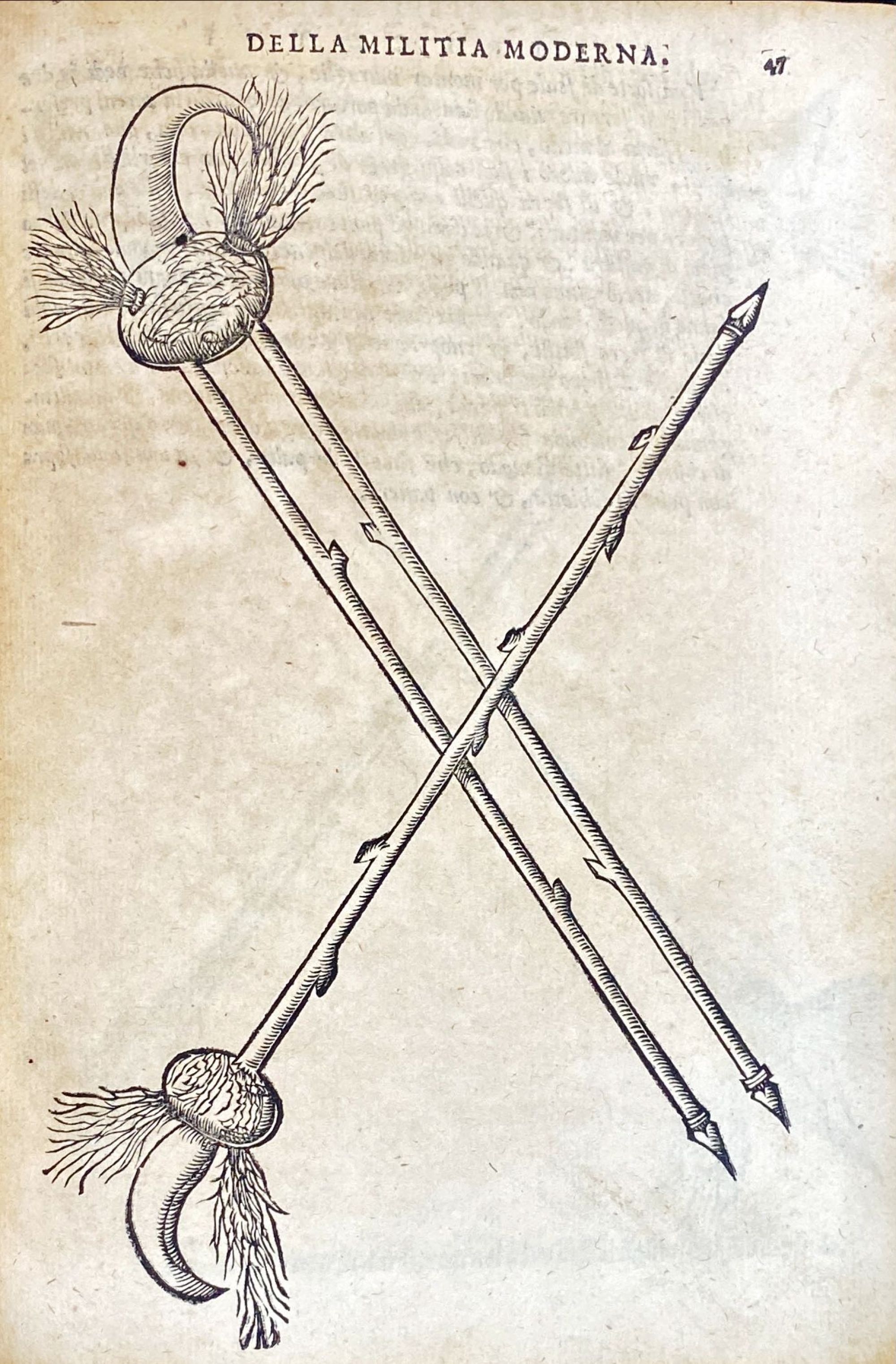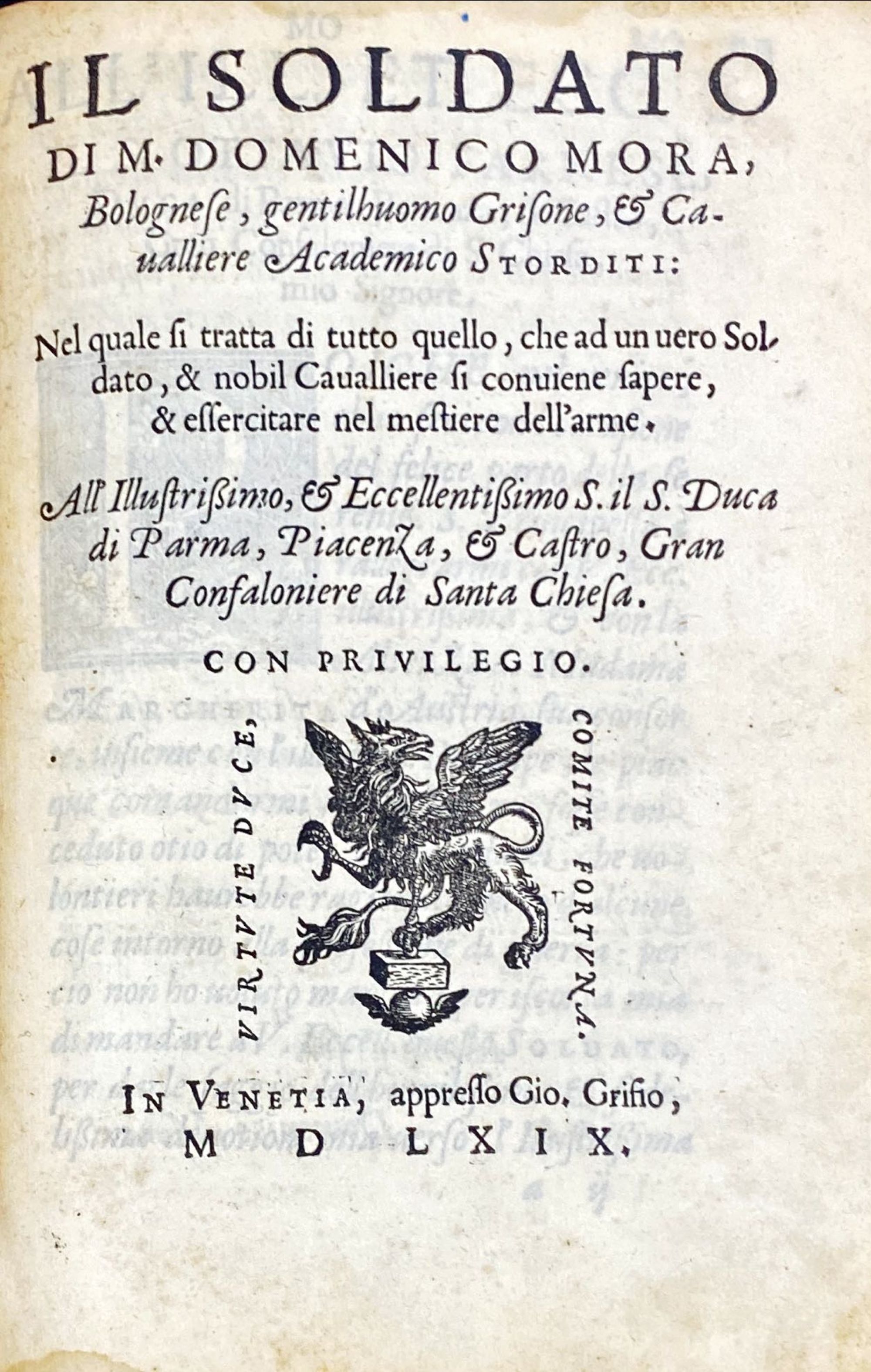 A segunda obra, tratado militar escrito pelo Capitão Francesco Ferretti, Cavaleiro de Santo Estêvão, que reúne uma série de ensinamentos práticos para o soldado. Ilustrada com 4 ilustrações em xilogravura de página inteira.