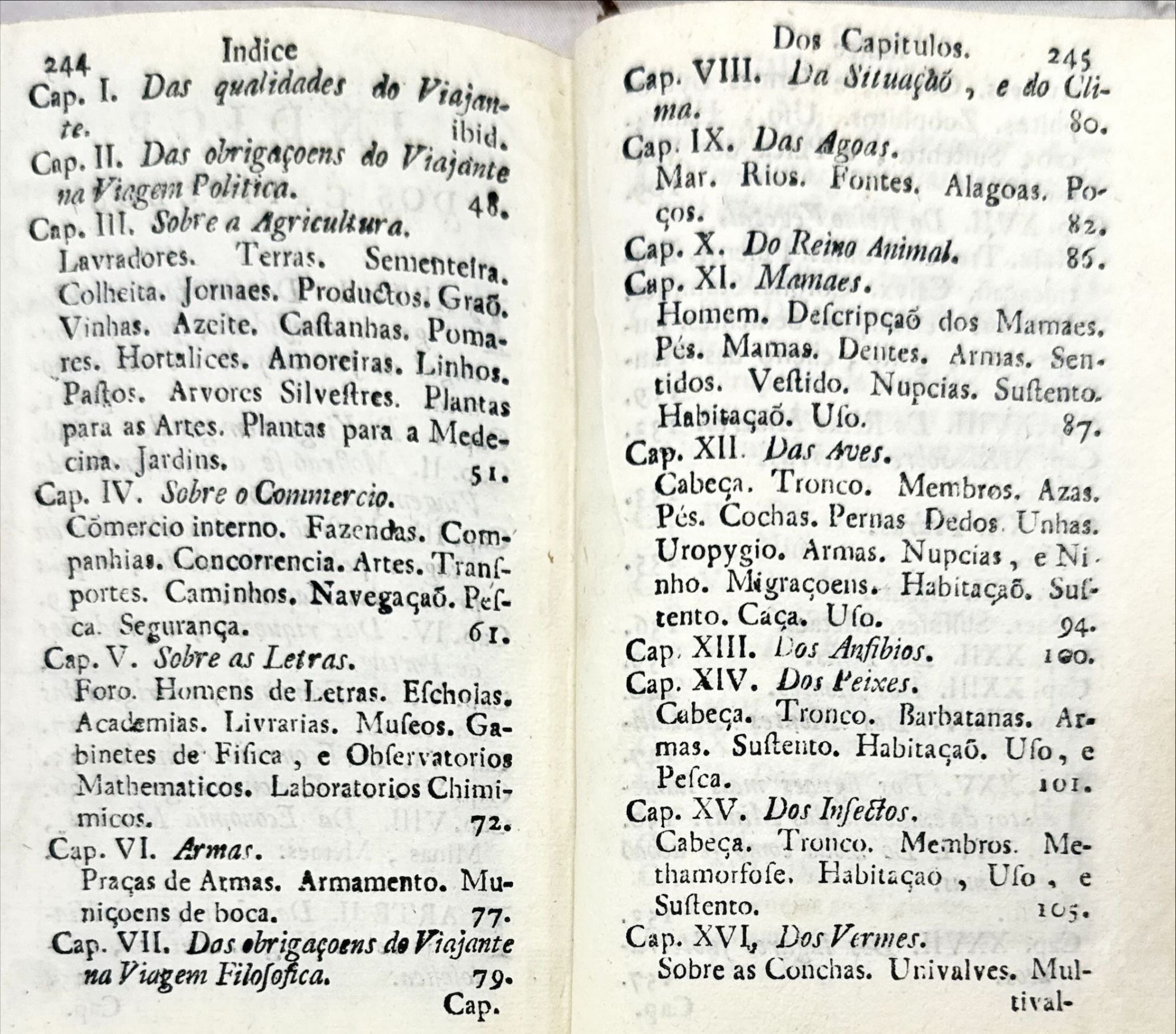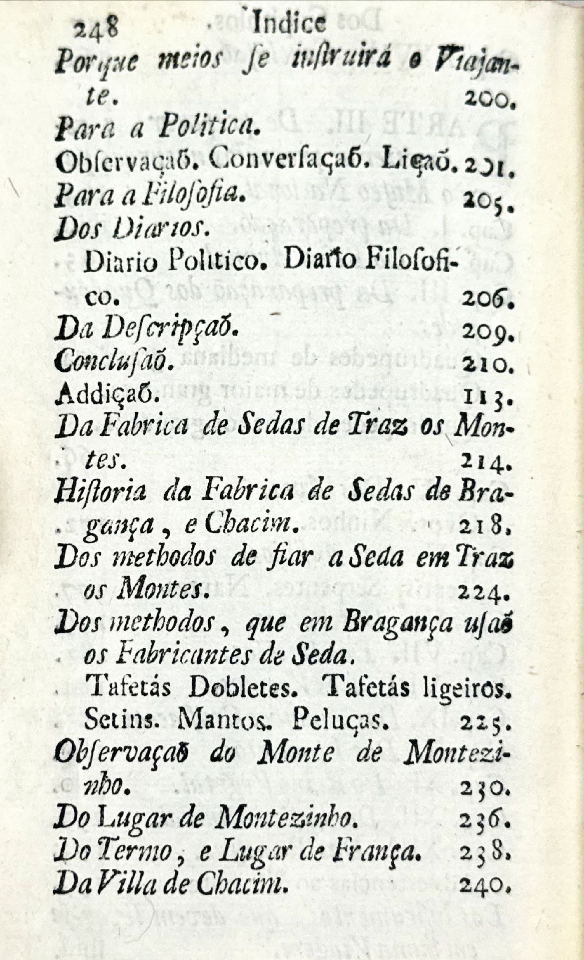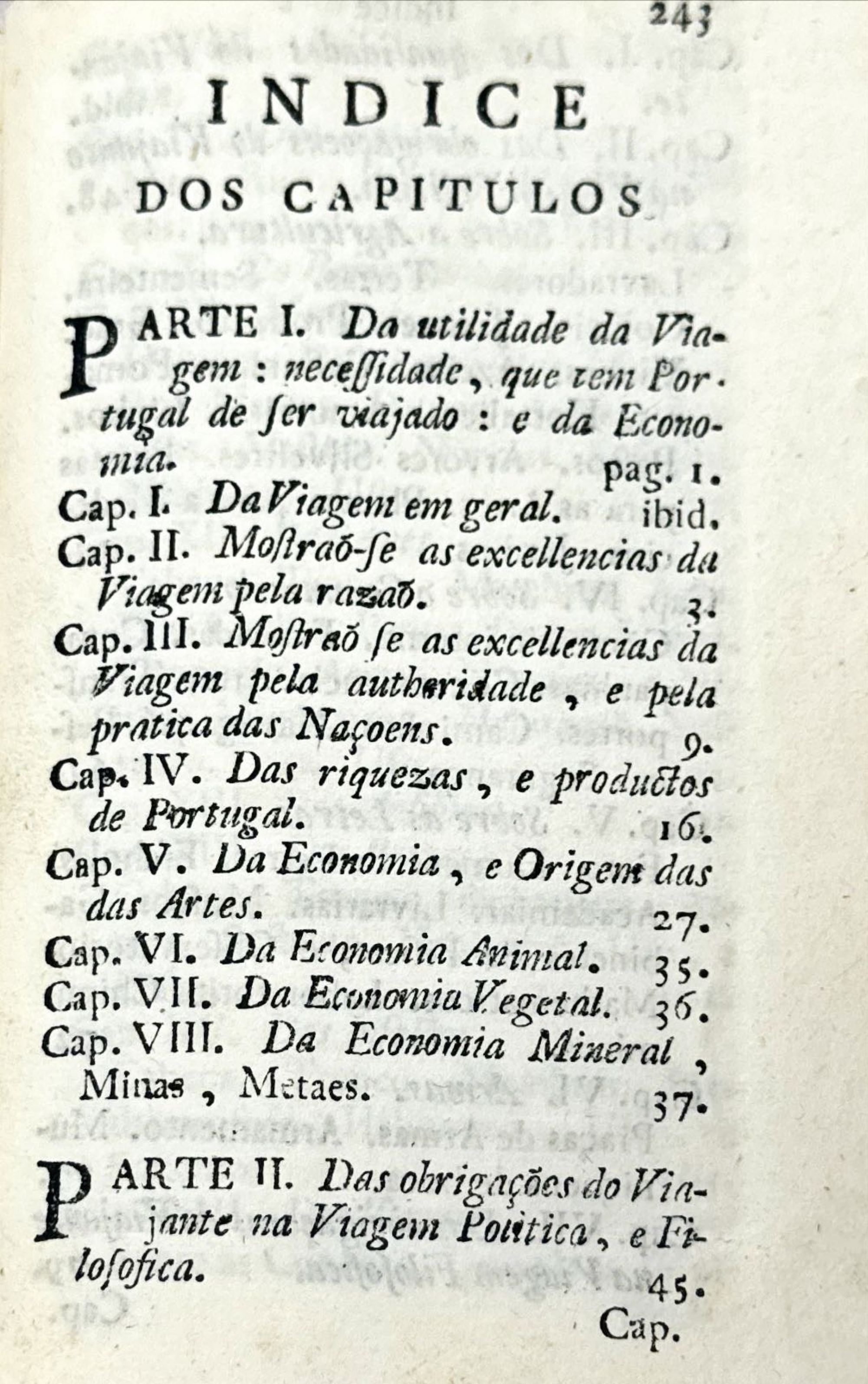 Trabalho completo e valioso de um roteiro de História natural para um viajante em Portugal. A obra trata diversos assuntos como Agricultura (Lavradores, Terras, colheita, vinhas, azeite, pomares, etc), natureza animal, vegetal, mineral, minas, metais, mares, rios, fontes, peixes, vermes, insectos, aves, etc. inclui ainda uma adição a província de Trás-os-Montes e suas observações sobre indústria, riquezas, comercio, agricultura, sedas. no fim possui 2 tabelas em folhas desdobráveis, uma de diário político e outra de diário filosófico. Exemplar em magnifico estado de conservação. Encadernação da época inteira de carneira