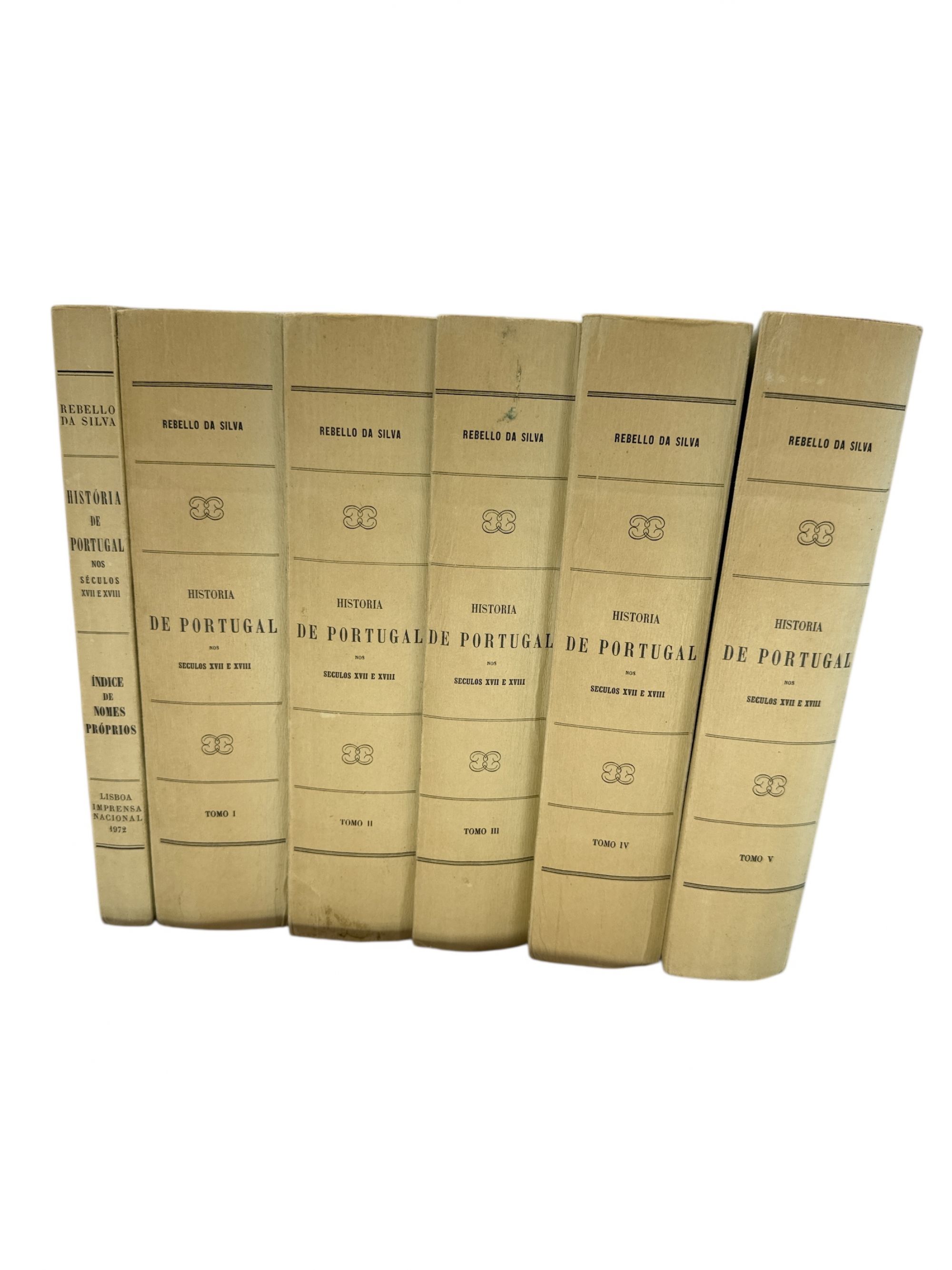 SILVA, Luis Augusto Rebello da. - HISTÓRIA DE PORTUGAL NOS SÉCULOS XVII E XVIII. Tomo I (ao V + Índice de Nomes Próprios). Lisboa. Imprensa Nacional. 1971 (a 1972). 6 Vols. In-8º. Brs.