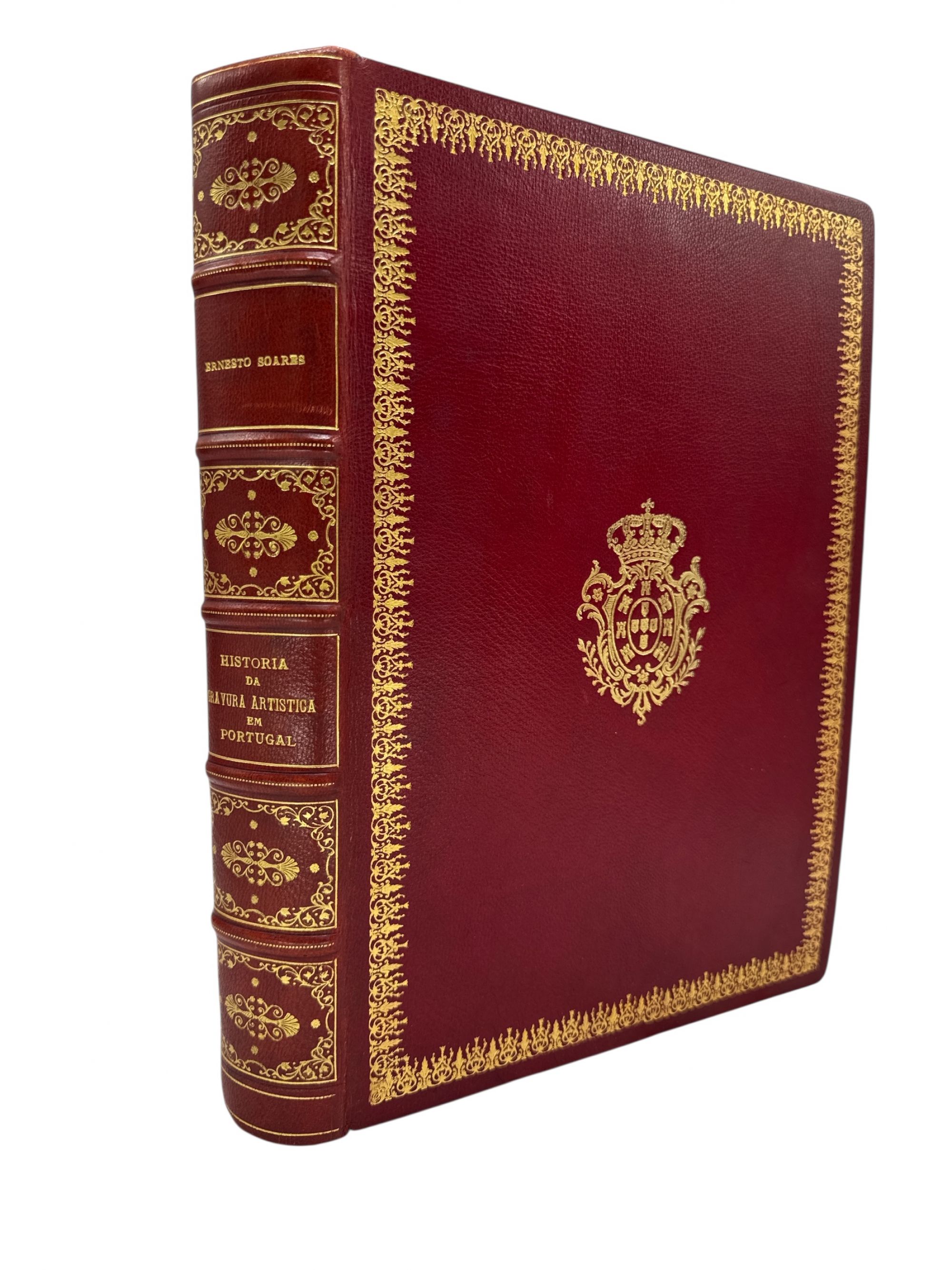 Primeira edição. Ilustrada. Tiragem de 300 exemplares, dos quais apernas 150 foram postos à venda, numerados e assinados pelo autor. Dedicatória do Instituto para a Alta Cultura na folha de guarda. Revestidos de boa encadernação inteira de chagrin com ferros a ouro nas lombadas, seixas e com o brasão de armas de Portugal ao centro de ambas as pastas. Assinada por Livraria Ferin. Capas de brochura preservadas.