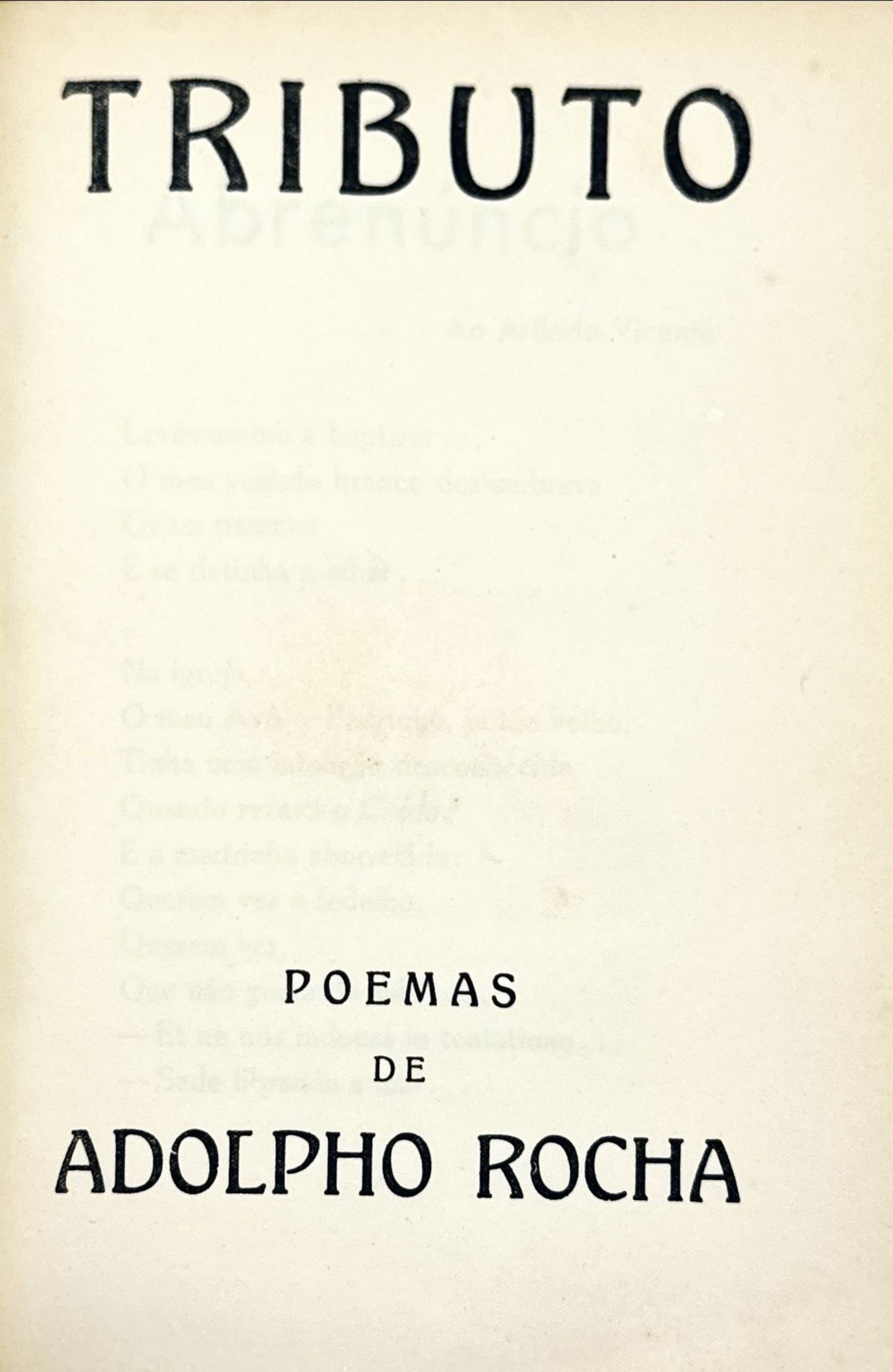 TORGA, Miguel. - TRIBUTO. Poemas de Adolpho Rocha. Coimbra. Atlântida. 1931. In-8º de 43, [1] págs. Enc.