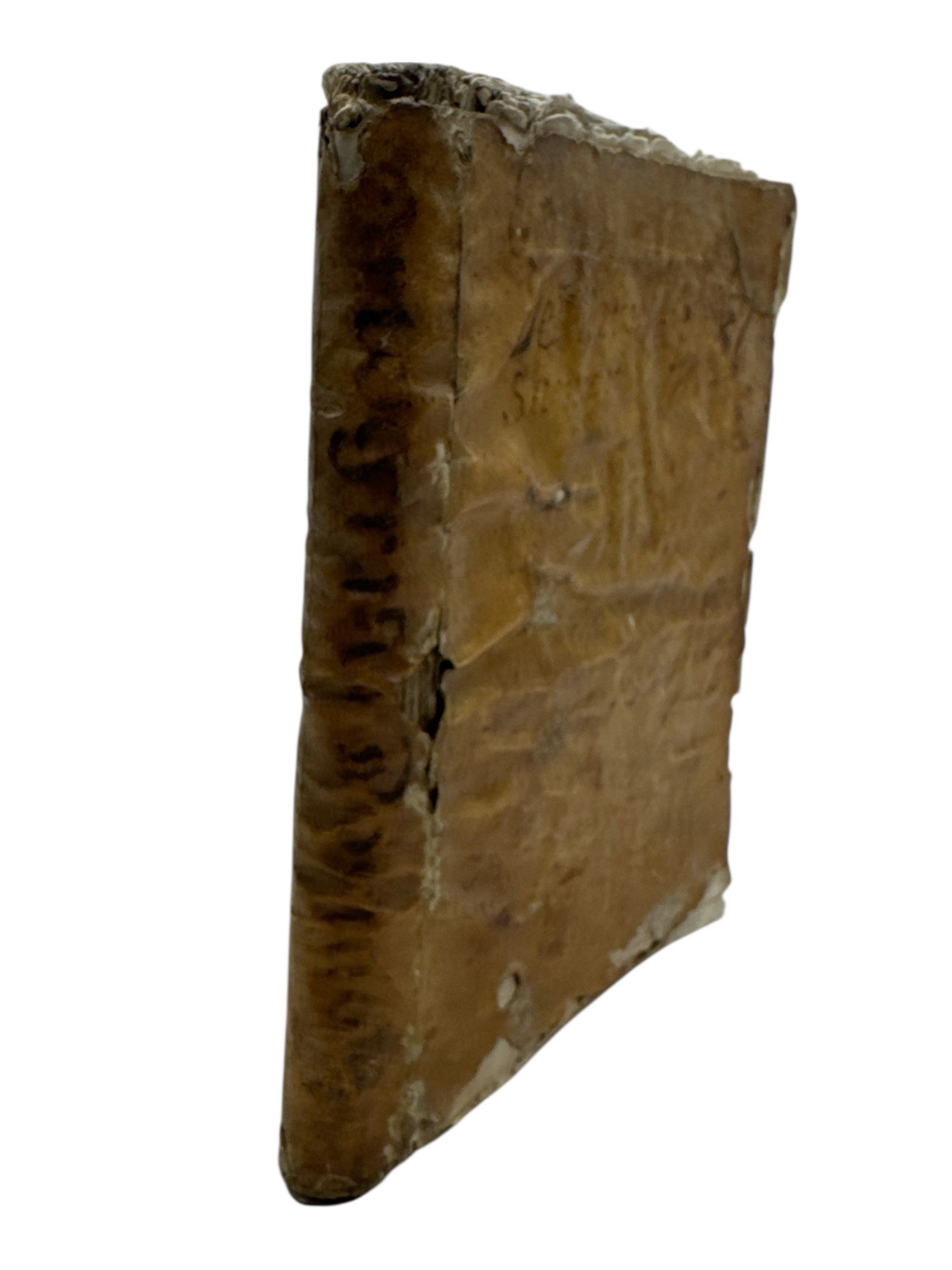 Primeira edição. Muito Rara. Exemplar com vários defeitos e manuseado, com frontispício restaurado, alguns cortes de traça marginal sem afetar palavras de texto. Com manchas de água em algumas folhas. Possui a tabuada gramatical em folha desdobrável. Encadernação inteira de pergaminho mal conservada. Pinto de Matos, 307; Ameal, 974.