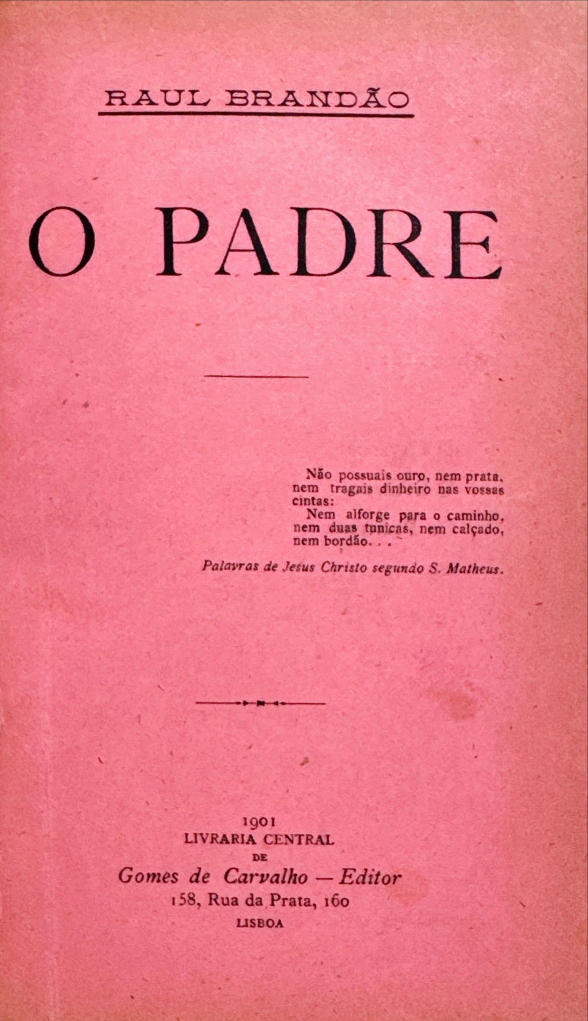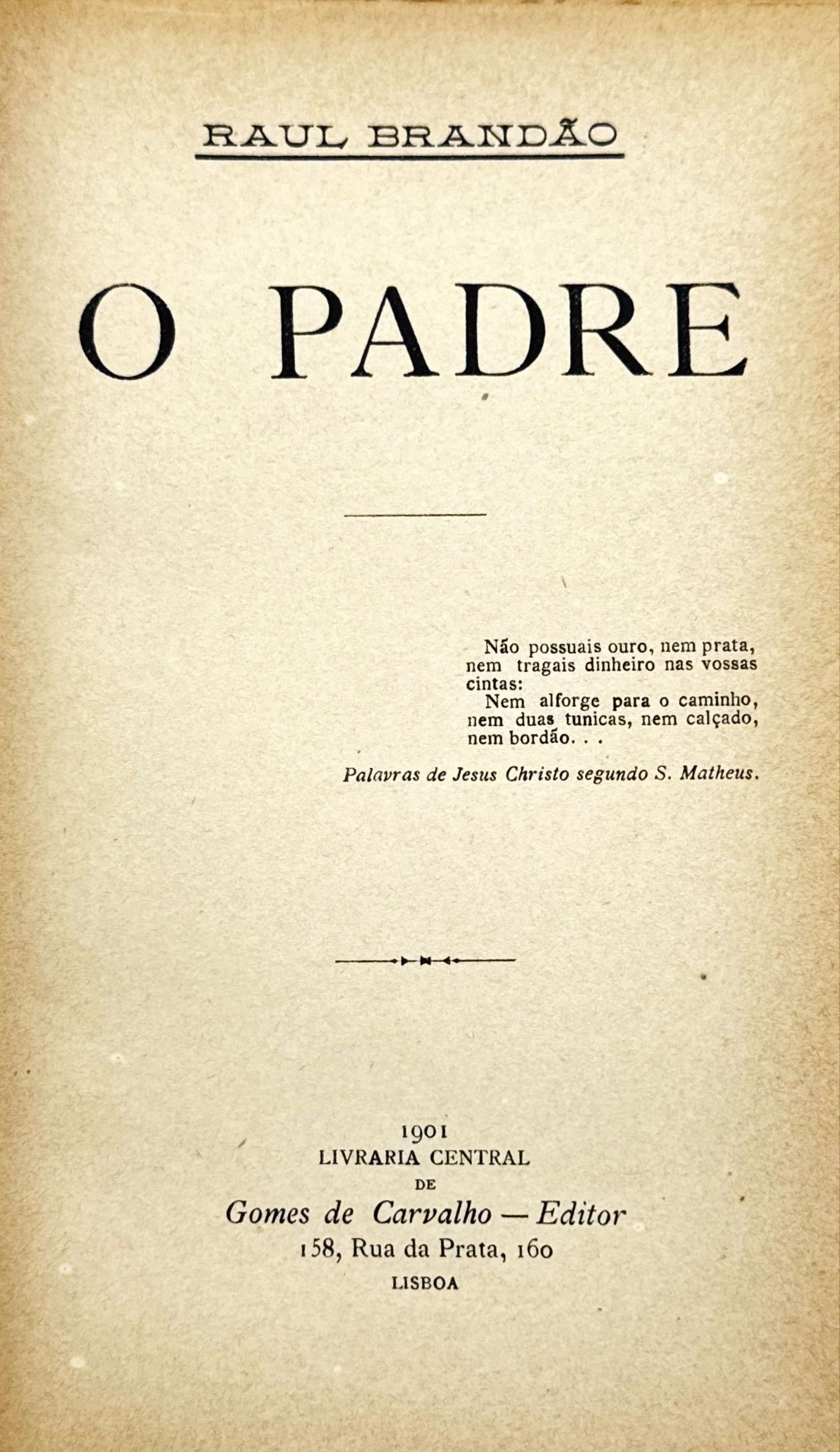 BRANDÃO, Raul. - O PADRE. Lisboa. Livraria Central. 1901. In-8º de 29, [1] págs. Enc.