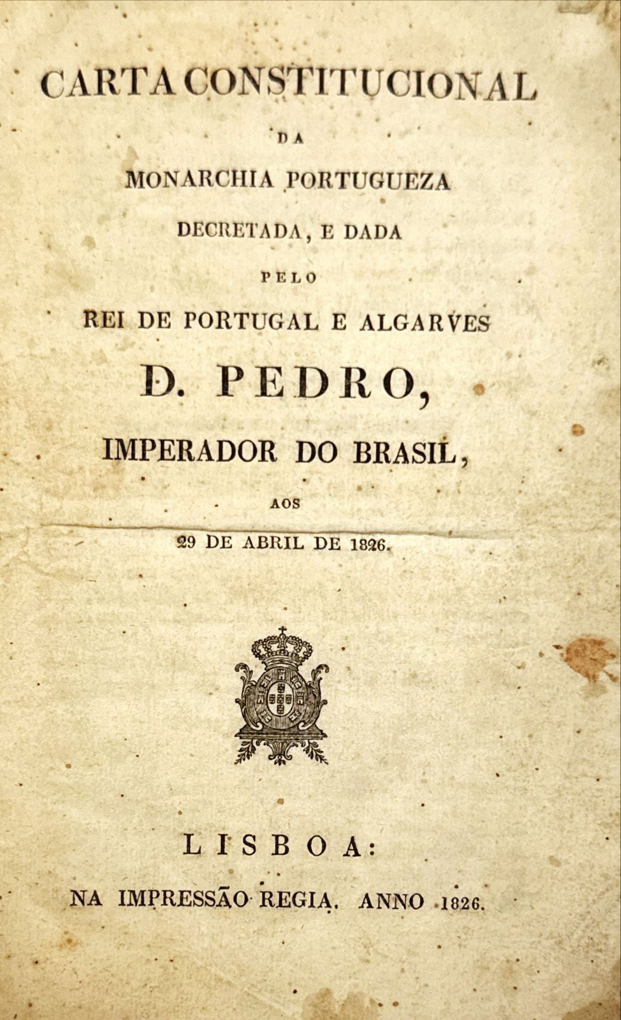 CARTA CONSTITUCIONAL DA MONARCHIA PORTUGUEZA. Decretada e dada pelo Rei de Portugal e Algarves D. Pedro Imperador do Brasil aos 29 de Abril de 1826.
