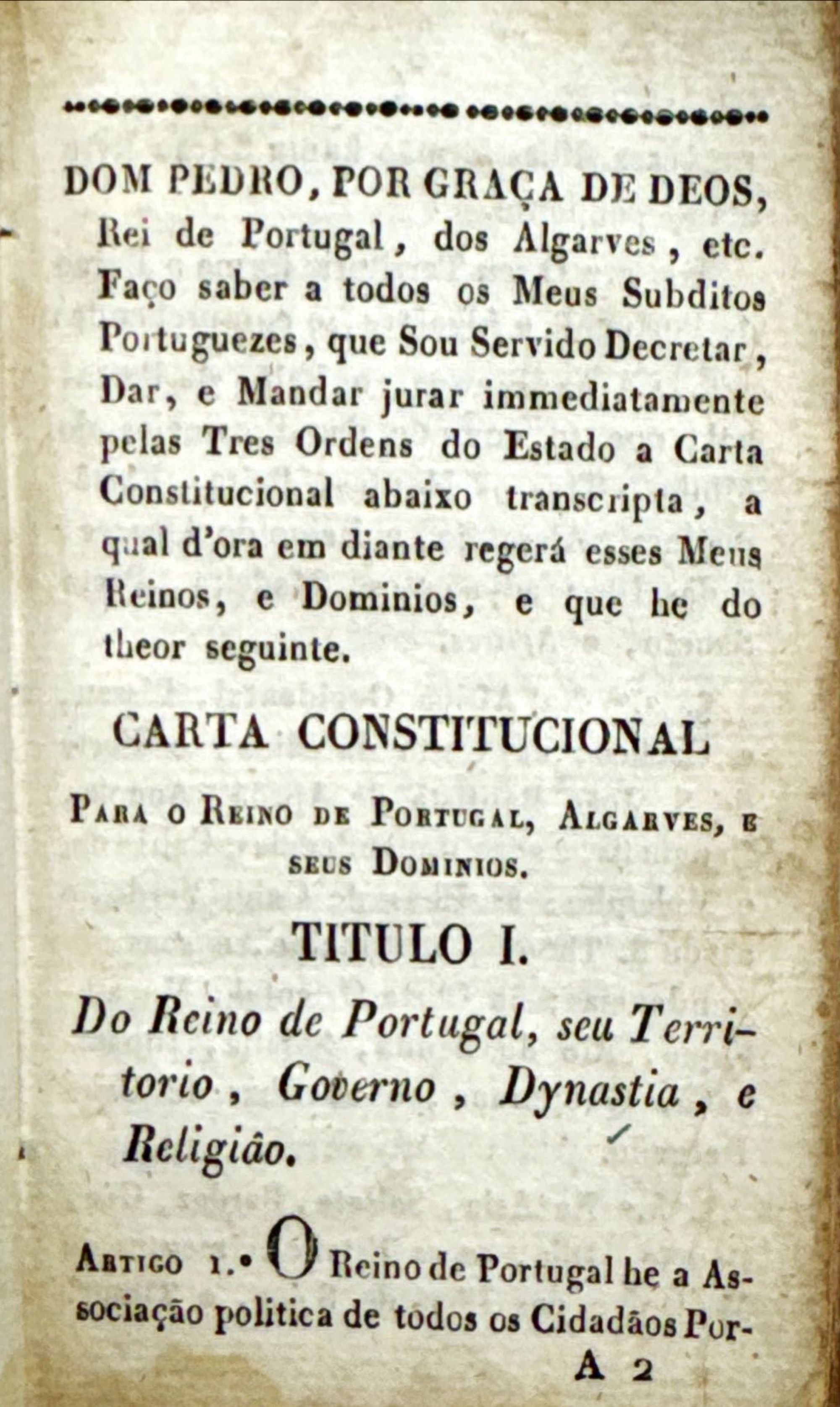 CARTA CONSTITUCIONAL DA MONARCHIA PORTUGUEZA. Decretada e dada pelo Rei de Portugal e Algarves D. Pedro Imperador do Brasil aos 29 de Abril de 1826. Reimpressa, conforme a edição oficial de Lisboa, por alguns refugiados Portuguezes.