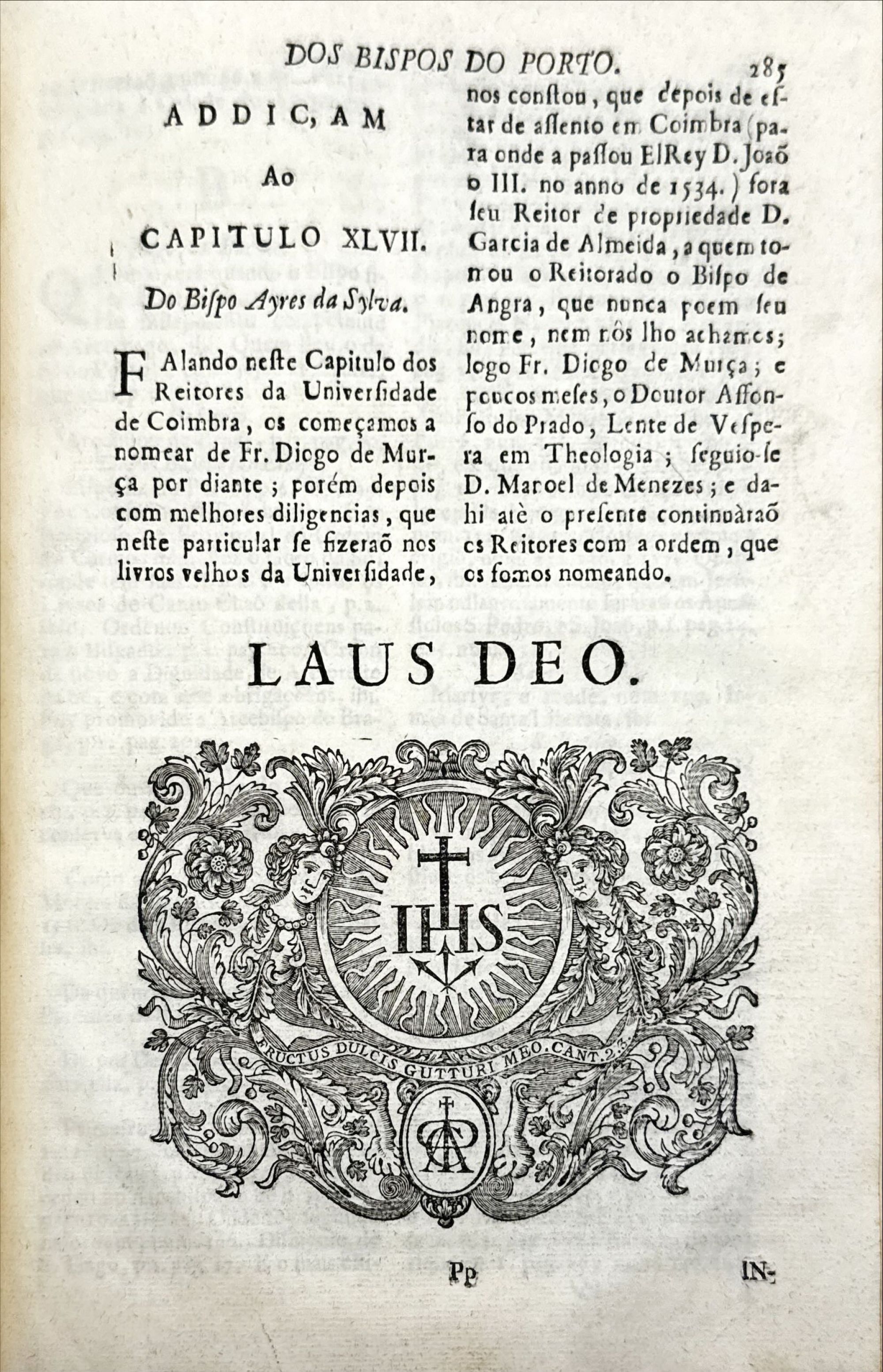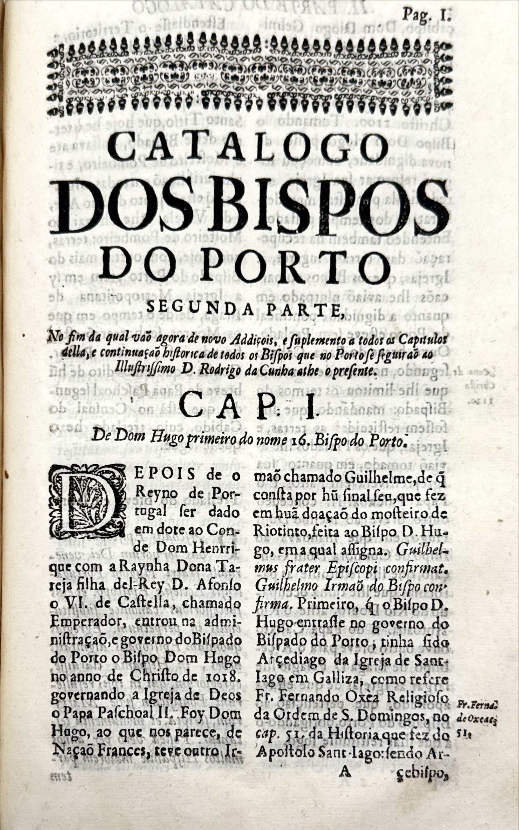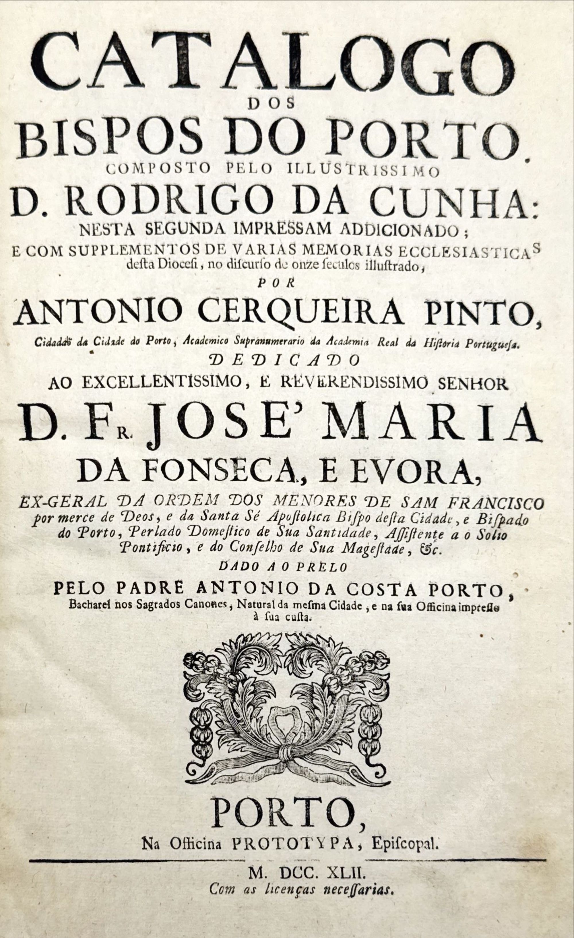 CUNHA, D. Rodrigo da. - CATALOGO DOS BISPOS DO PORTO, COMPOSTO PELO ILLUSTRISSIMO. NESTA SEGUNDA IMPRESSAM ADDICIONADA