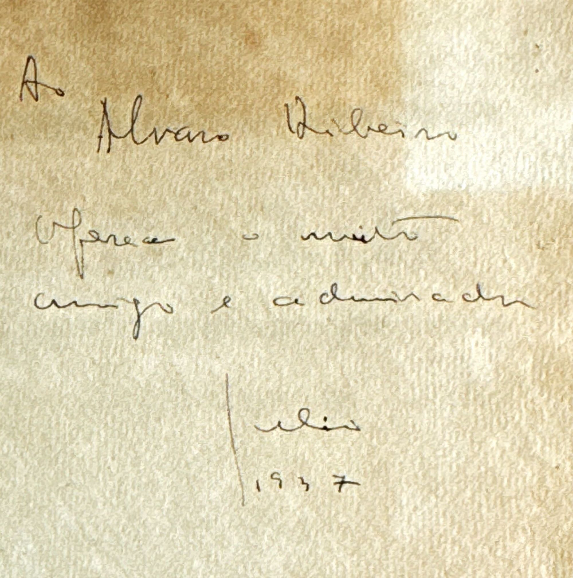 Primeira edição e livro de estreia do autor. Raro. Valorizado com dedicatória autografa do autor ao Álvaro Ribeiro. Capa de brochura e lombada com defeitos, como acontece em todos os exemplares devido a fineza do papel. Miolo bem conservado.
