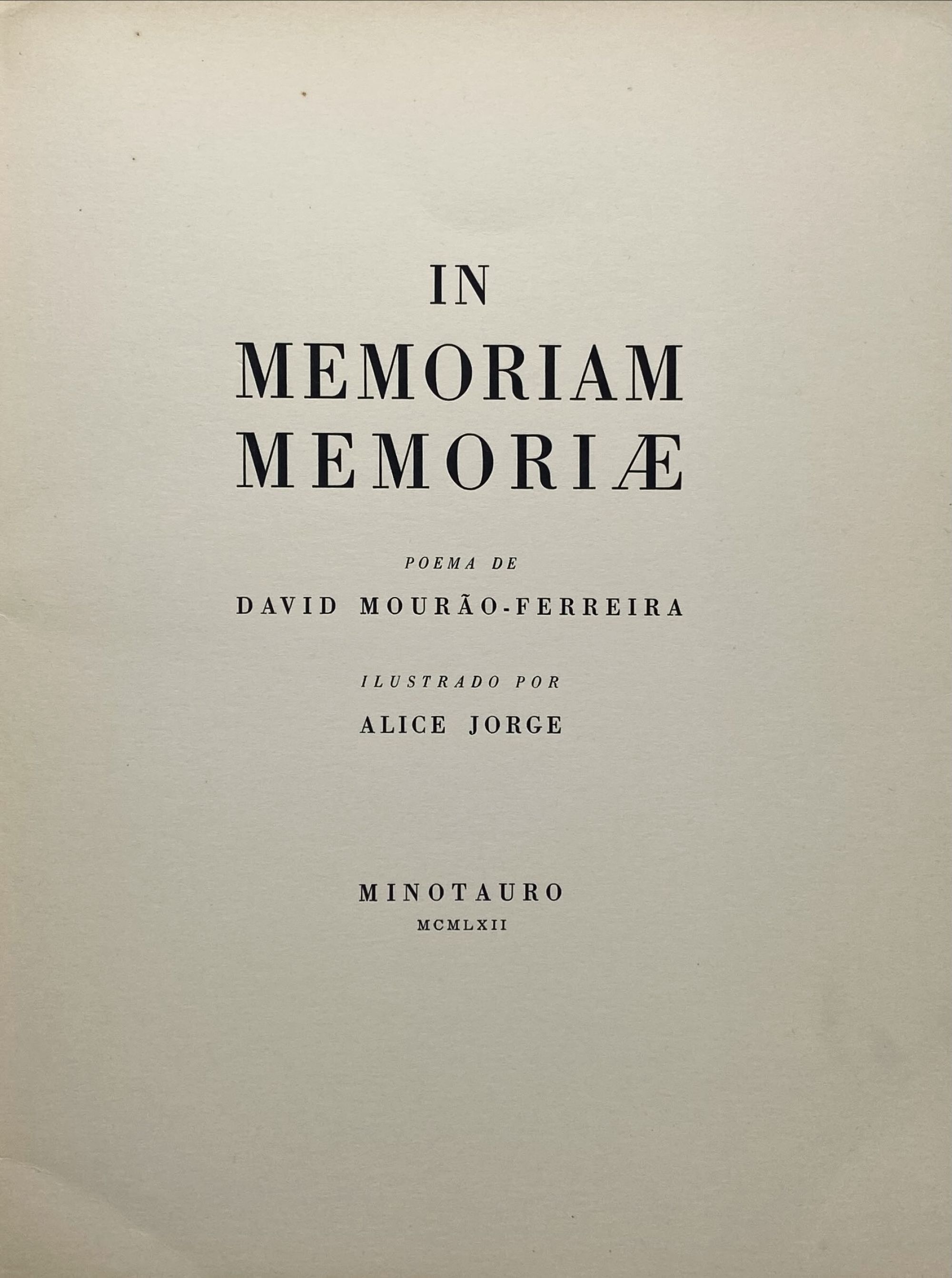 FERREIRA, David Mourão. - IN MEMORIAM MEMORIAE. Poema de... Ilustrado por Alice Jorge.