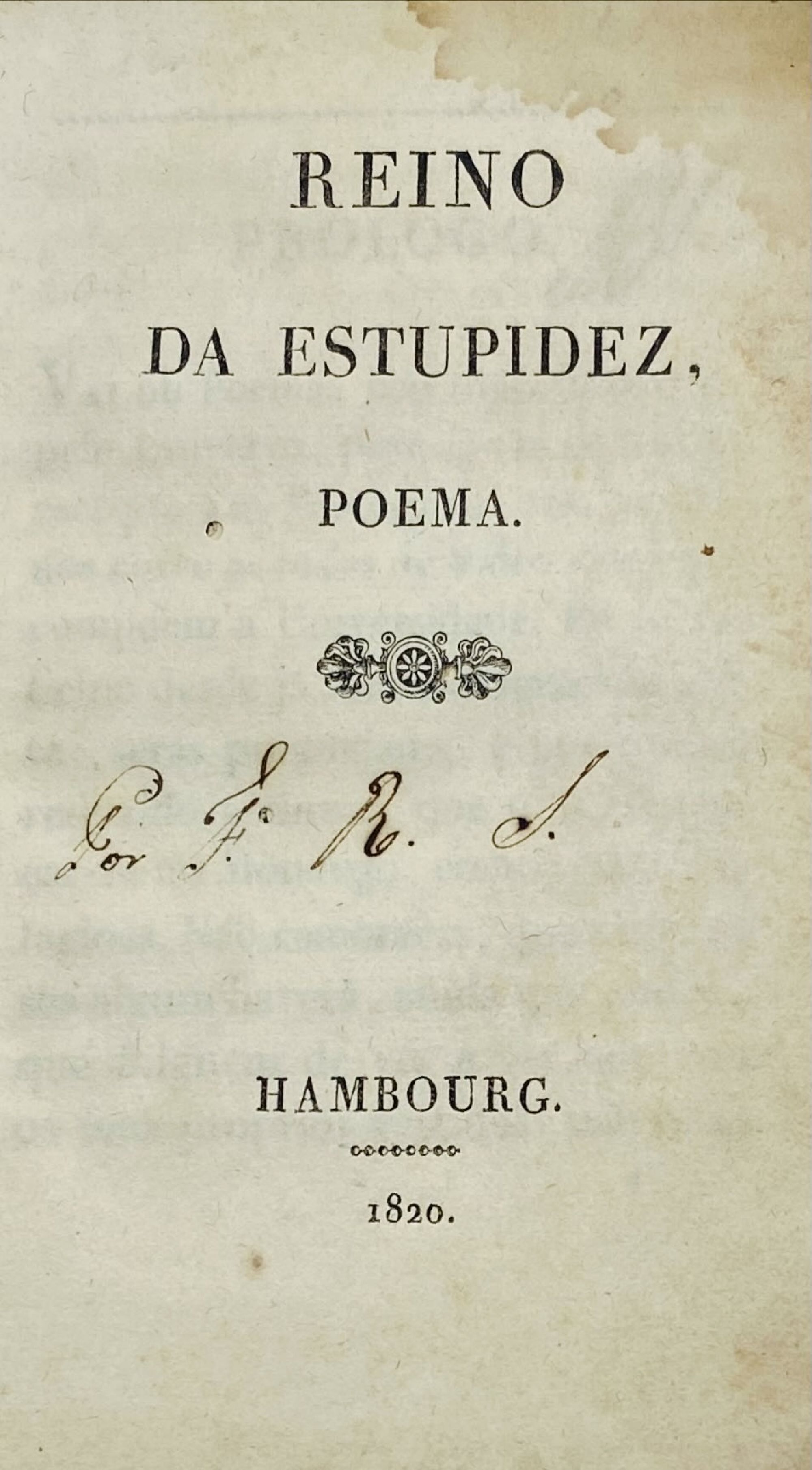 FRANCO, Francisco de Melo. - REINO DA ESTUPIDEZ. Poema. Hambourg. 1820. In-8º peq. de XI, 62 págs. Enc.