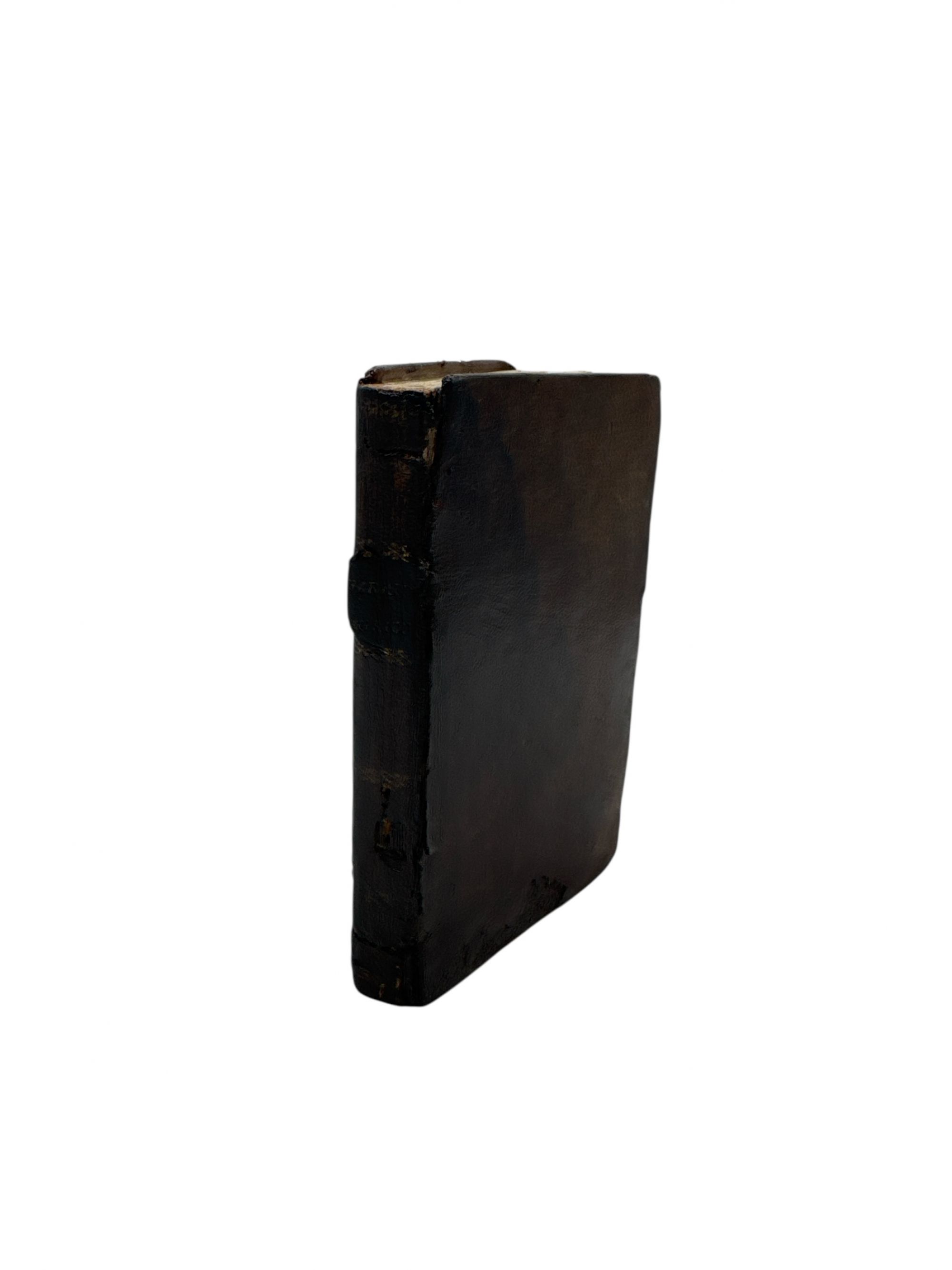 Pouco vulgar. Exemplar manuseado. Assinatura no frontispício. Encadernação da época em carneira com defeitos.