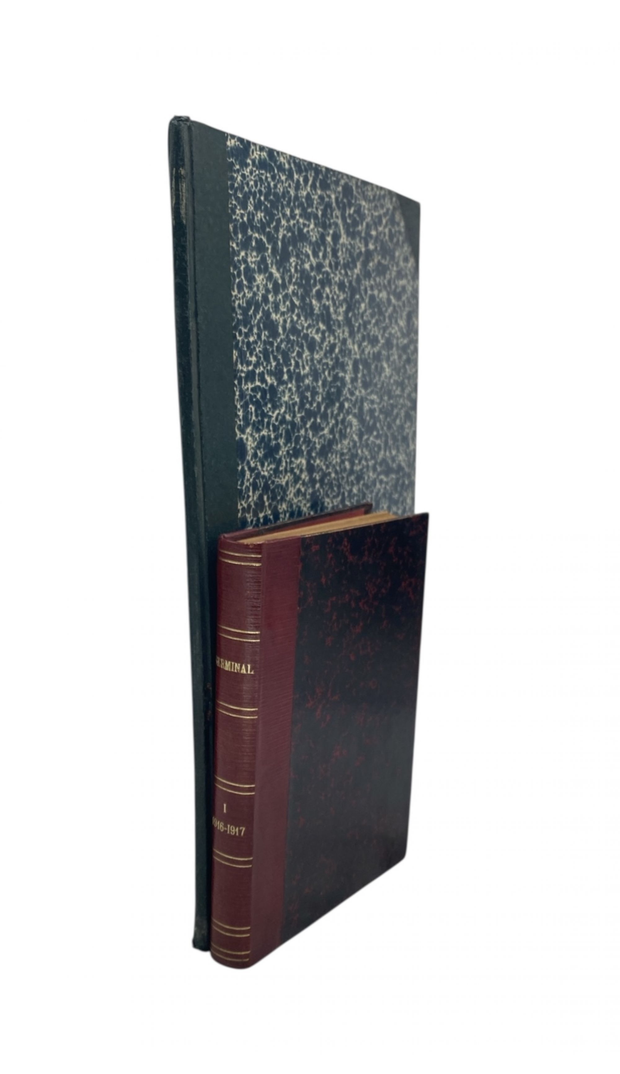 Coleção completa e rara. Revista de carácter anarquista e fundamental para o estudo do movimento operário da época e para compreendermos a posição de alguns anarquistas durante a Grande Guerra. O Grupo Germinal apoiou a participação na guerra ao lado dos Aliados. A primeira série com 19 números num total de 76 páginas e a segunda série de menor formato de 18 números com 521 páginas. Bem conservados. Encadernações meia de pele.