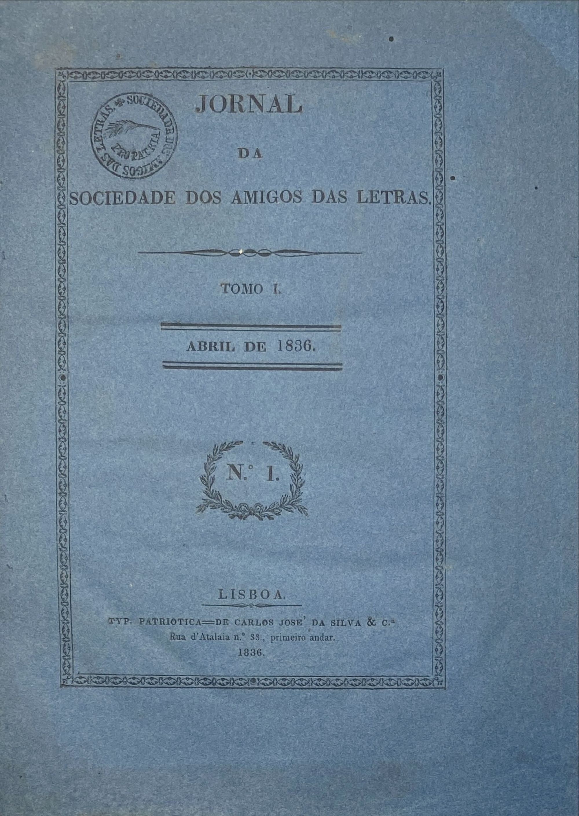 JORNAL DA SOCIEDADE DOS AMIGOS DAS LETRAS. Nº1 - abril de 1836 (ao Nº5 - agosto de 1836). Lisboa. Typ. Patriotica. 1836 5 nos. In-4º de 163 págs. Encs em 1.