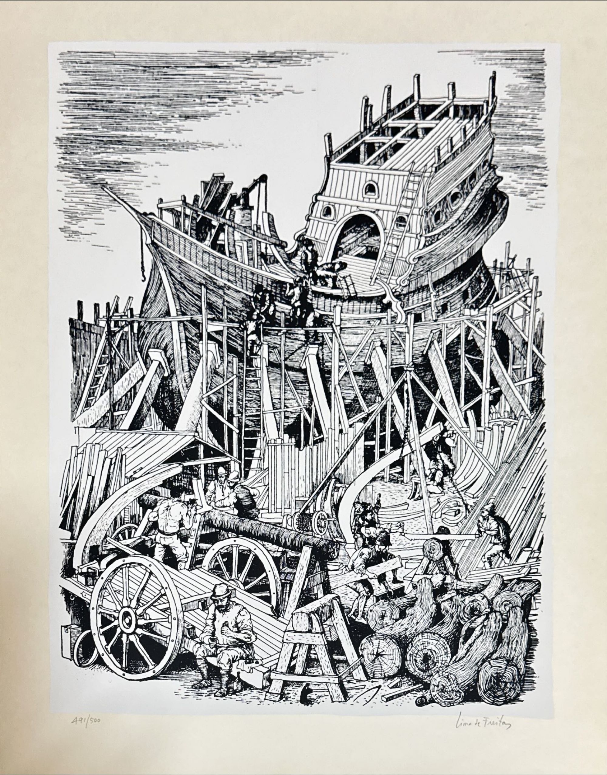 A tiragem especial destas seis serigrafias assinadas de Lima de Freiras, para bibliófilos, foi de 500 exemplares, numerados, este com o nº 491. Acondicionados numa pasta-estojo própria em papel com alguma sujidade.
