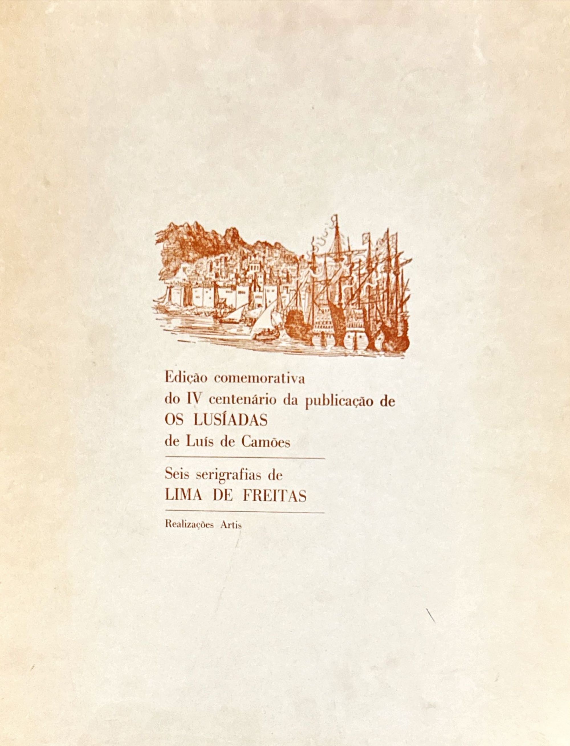 LIMA DE FREITAS. Edição Comemorativa do IV Centenário da publicação de Os LUSIADAS de Luis de Camões. Seis Serigrafias sobre lo poema épico Os Lusíadas de Luis de Camões. Lisboa. 1972. In-Fólio de [4] págs. Br.