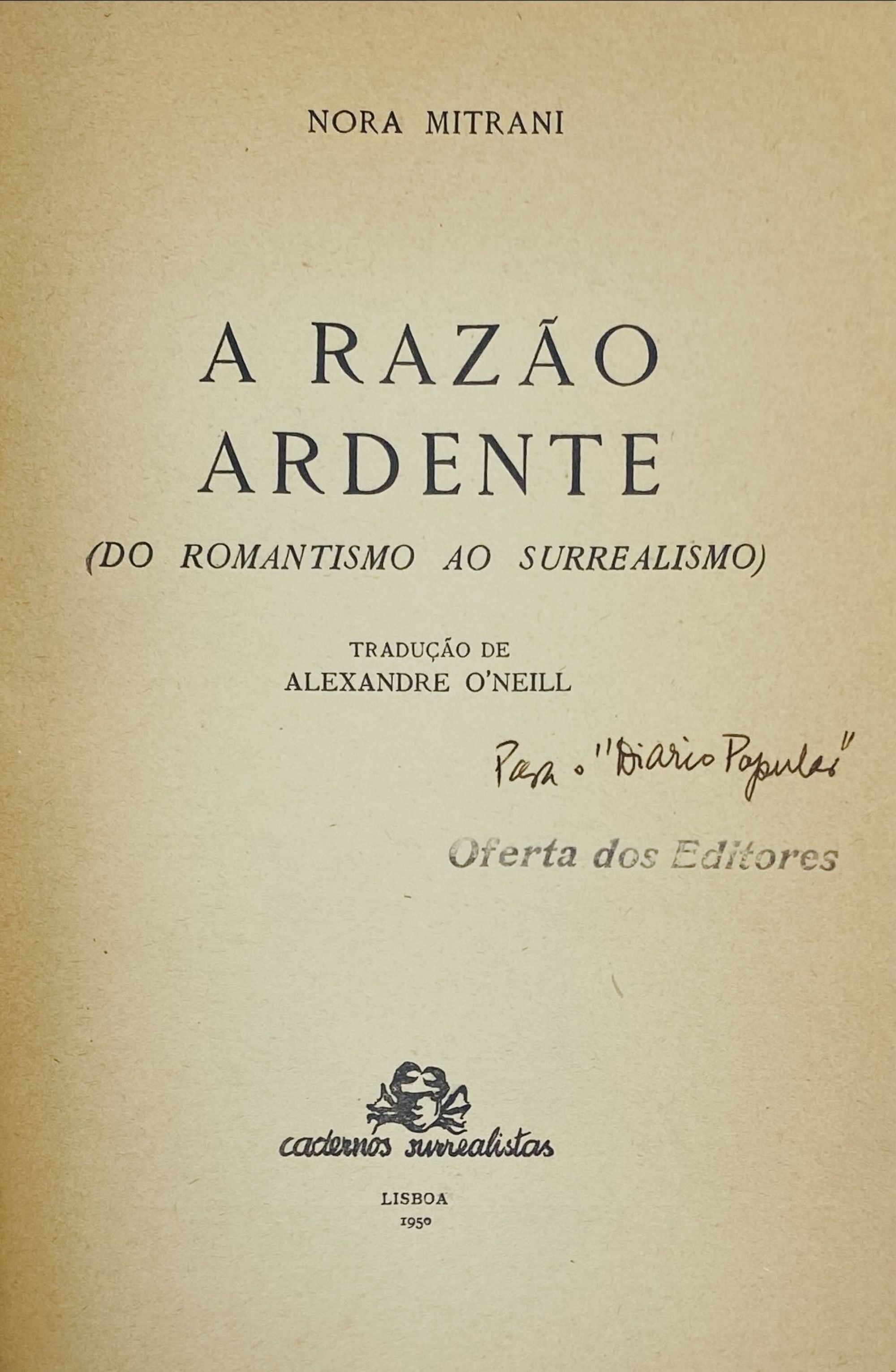MITRANI, Nora. - A RAZÃO ARDENTE. Tradução de Alexandre O'Neill. Cadernos surrealistas.