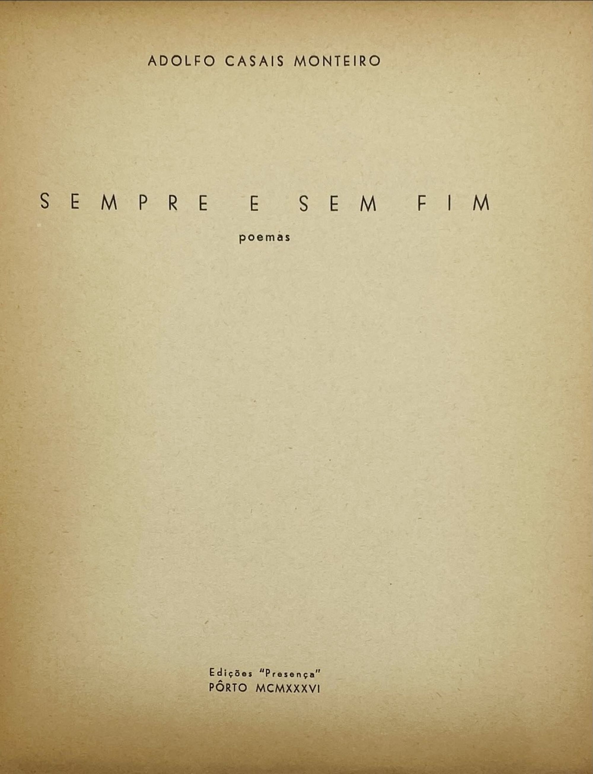 MONTEIRO, Adolfo Casais. - SEMPRE E SEM FIM. Poemas. Porto. Edições Presença. 1936. In-4º de 78 págs. Br.