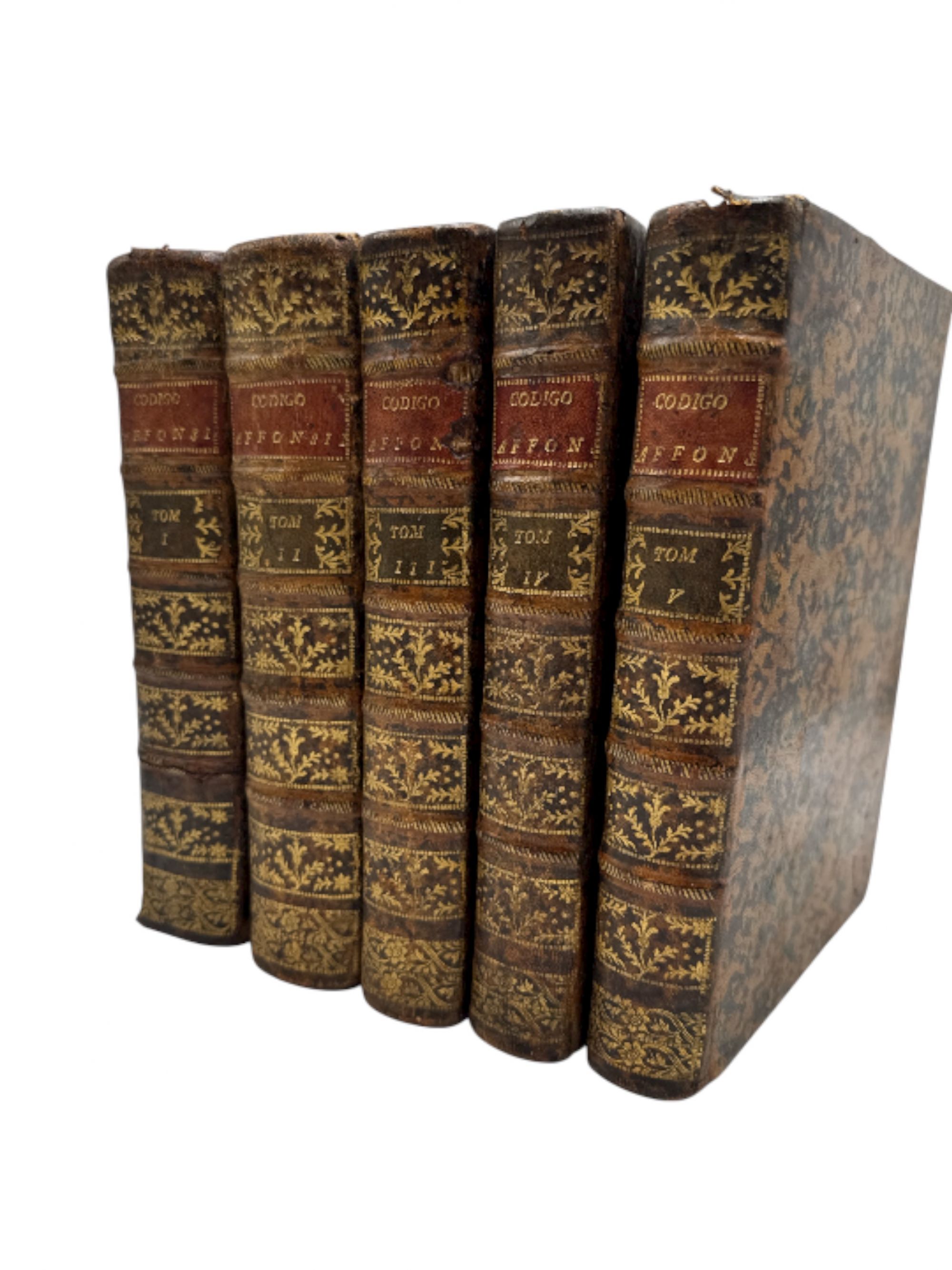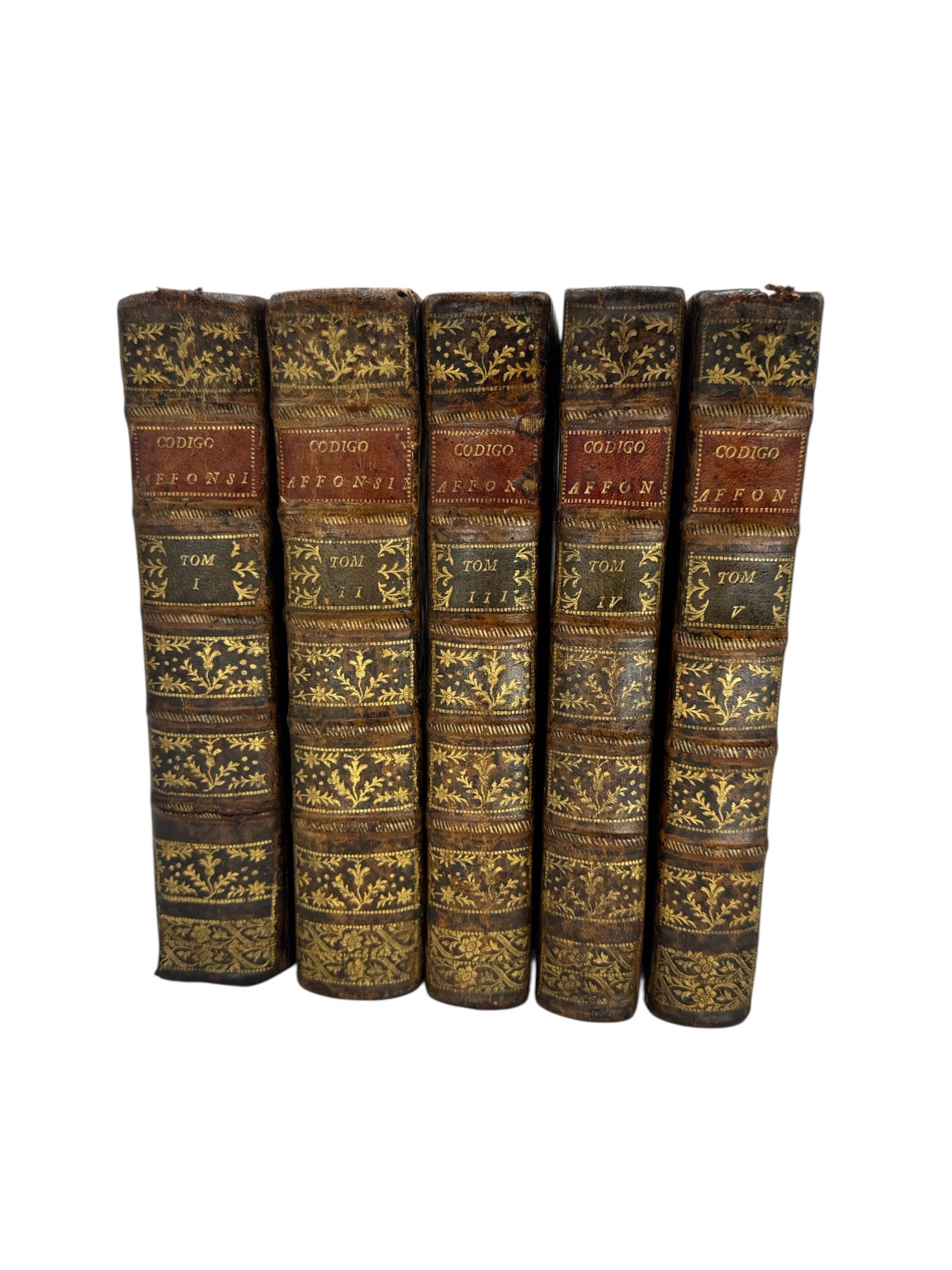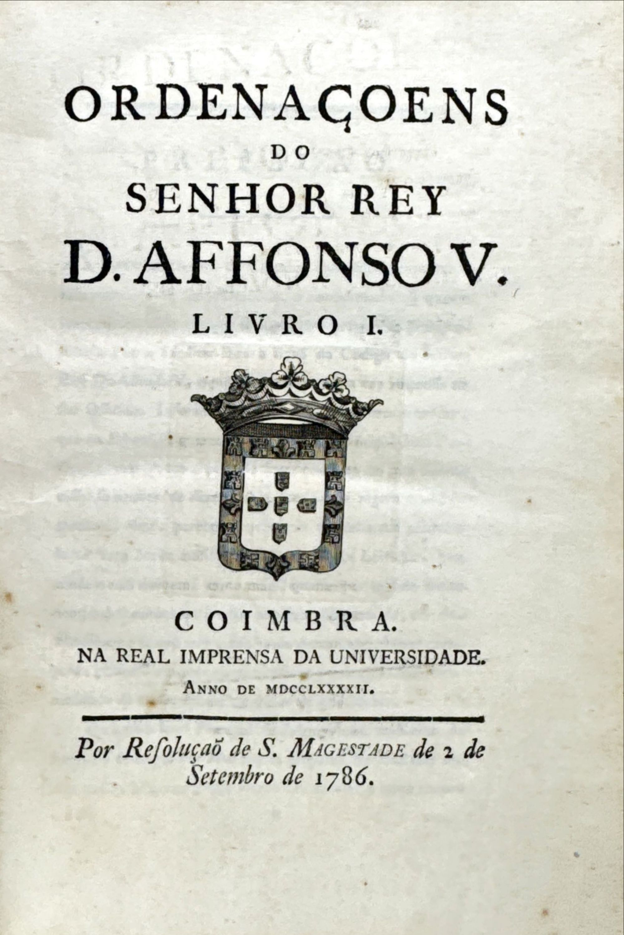 ORDENACOENS DO SENHOR REY D. AFFONSO V. Livro I (ao V). Coimbra. Na Real Imprensa da Universidade. 1786 5 vols. In-8º Encs.