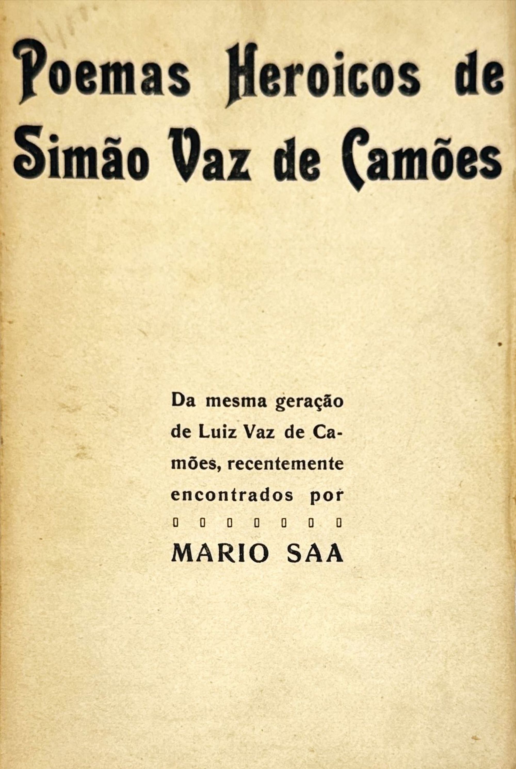 SAA, Mário. - POEMAS HEROICOS DE SIMÃO VAZ DE CAMÕES. Da mesma geração de Luiz Vaz de Camões, cantor dos