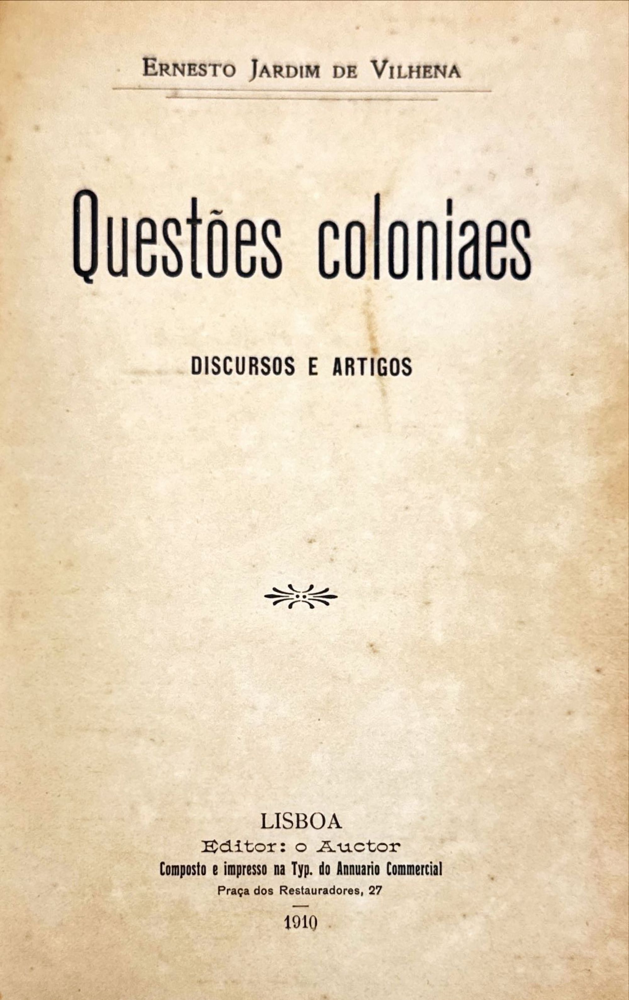 VILHENA, Ernesto Jardim de. - QUESTÕES COLONIAES. Discursos e Artigos.