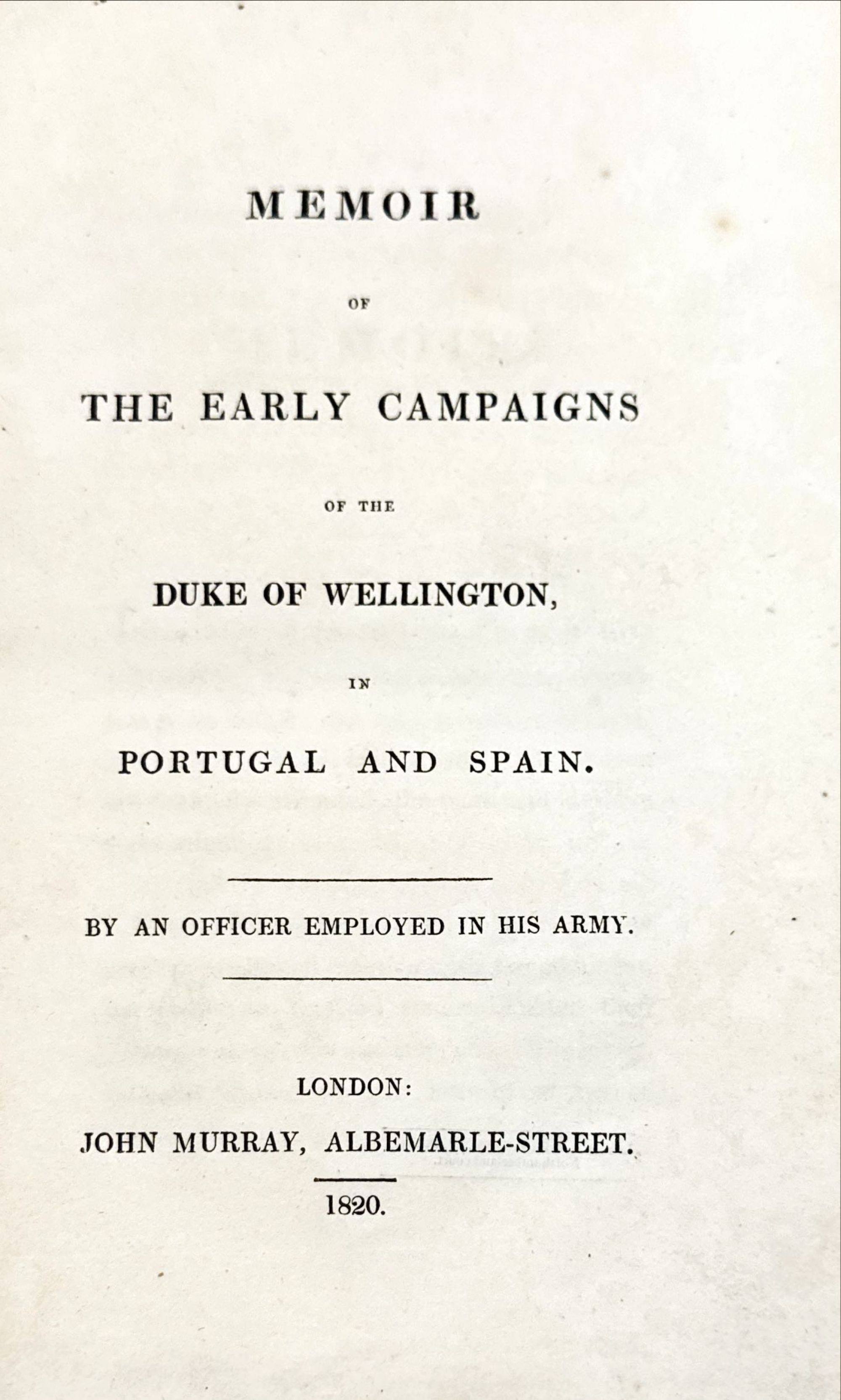WESTMORLAND, John Fane. - MEMOIR OF THE EARLY CAMPAIGNS OF DUKE OF WELLINGTON, IN PORTUGAL AND SPAIN.