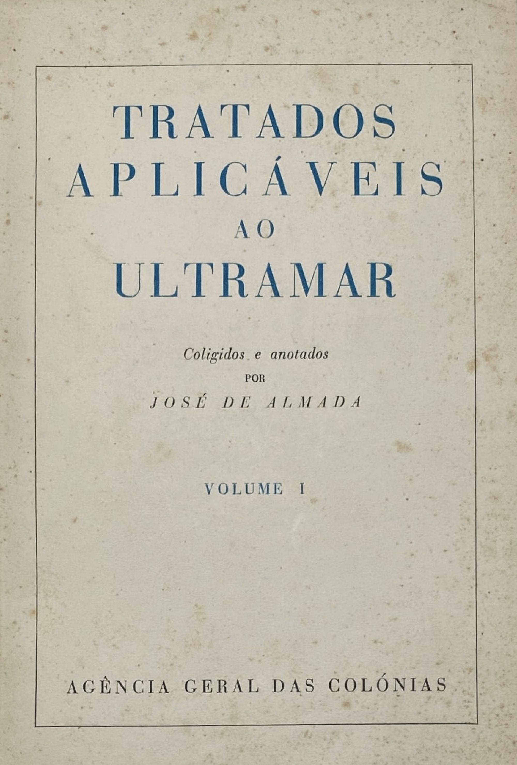 ALMADA, José. - TRATADOS APLICÁVEIS AO ULTRAMAR. Coligidos e anotados... Volume I (ao Volume VI + Apêndice e duas caixas com mapas). Juntamos do mesmo autor: TRATADO DE 1891. Lisboa. 1947. 454 págs. Lisboa. Agência Geral das Colónias. 1942 (a 1943). 6 Vols. em 7 Tomos + 2 caixas. Encs.