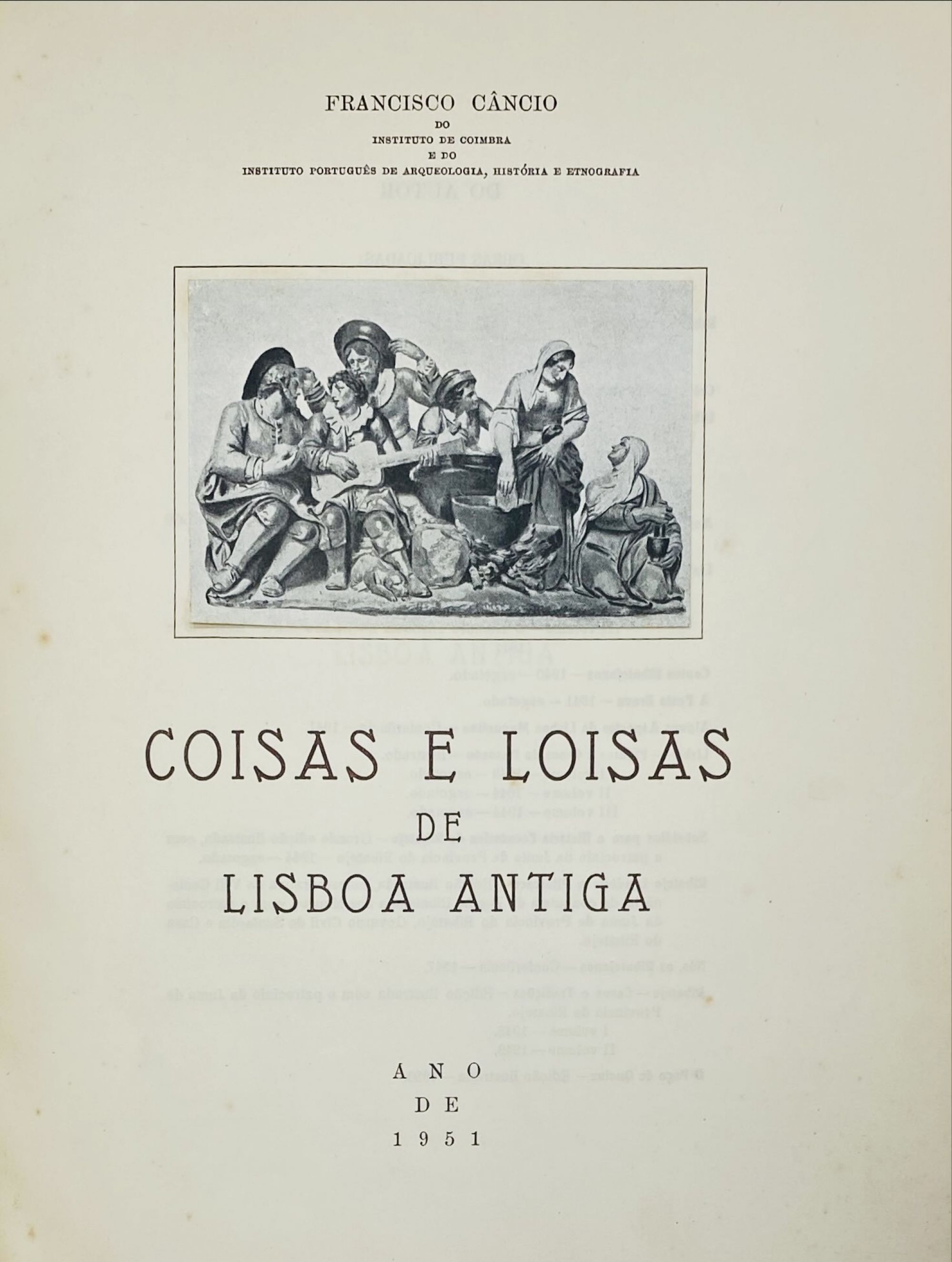 CÂNCIO, Francisco. - COISAS E LOISAS DE LISBOA ANTIGA. Lisboa. Ano de 1951. In-4º de 505, [1] págs. Enc.