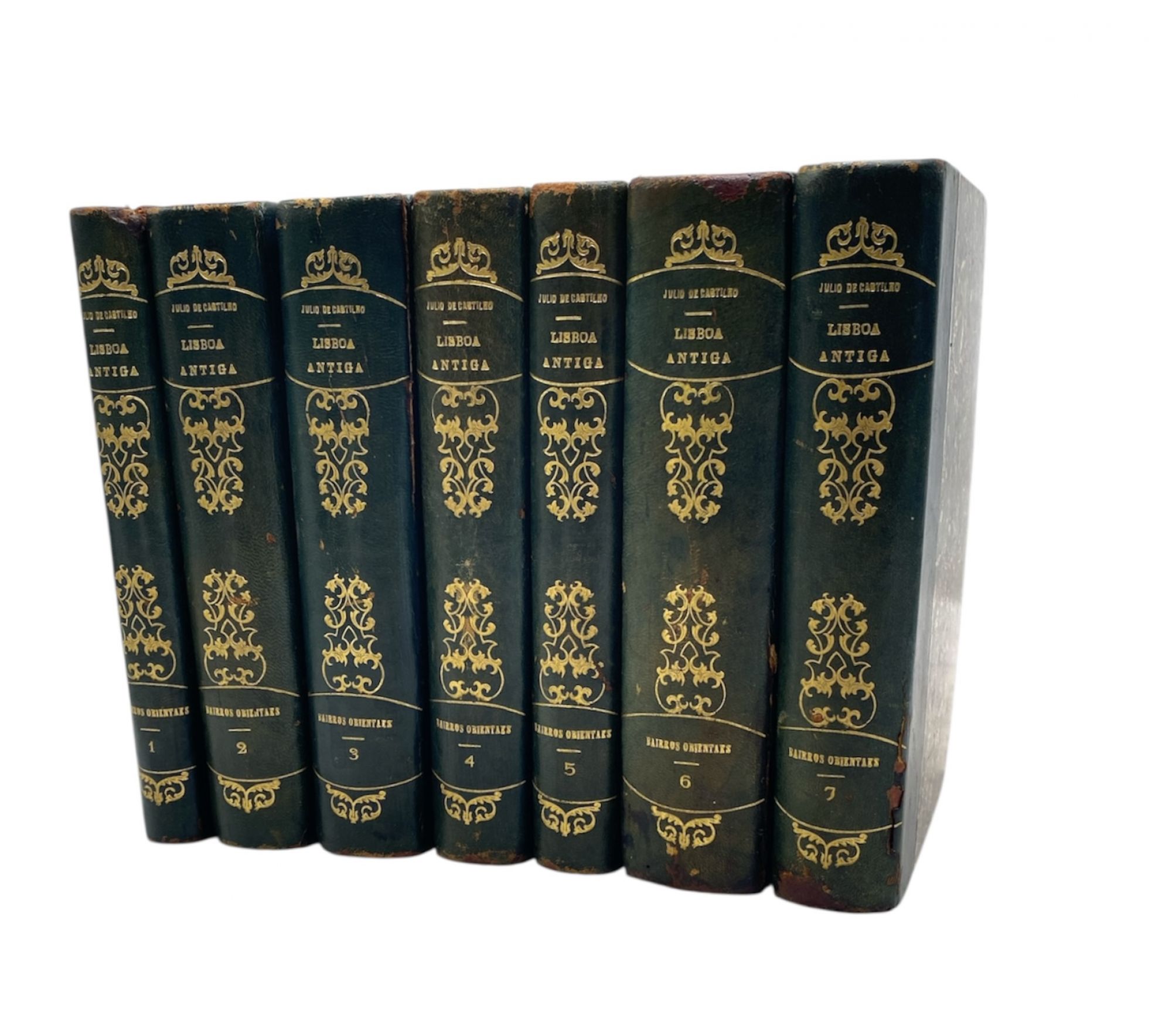 CASTILHO, Júlio de. - LISBOA ANTIGA. Bairros Orientaes. Volume I (ao VII). Lisboa Livraria Ferreira. 1884 (a 1887). 7 Vols. In-8º Encs.