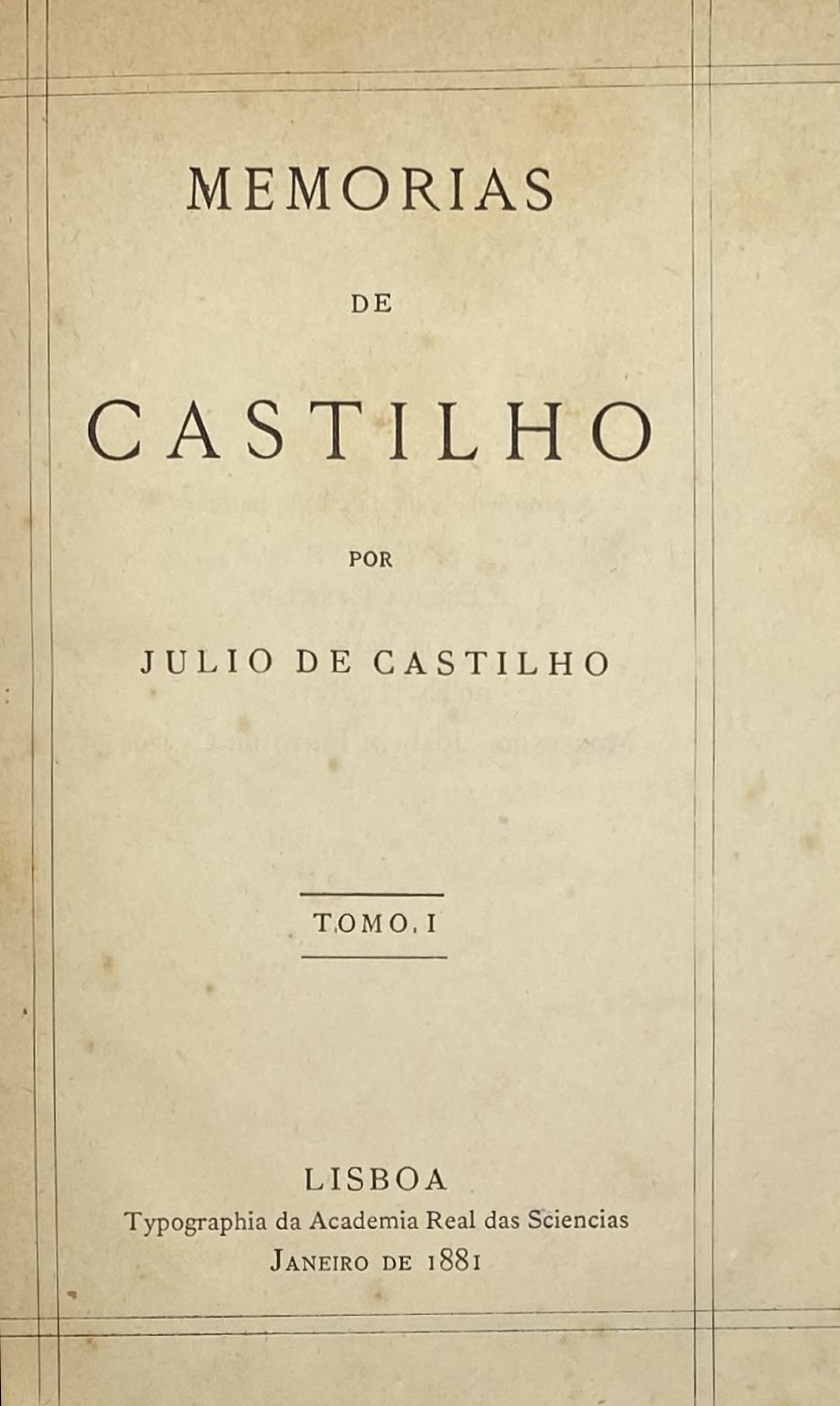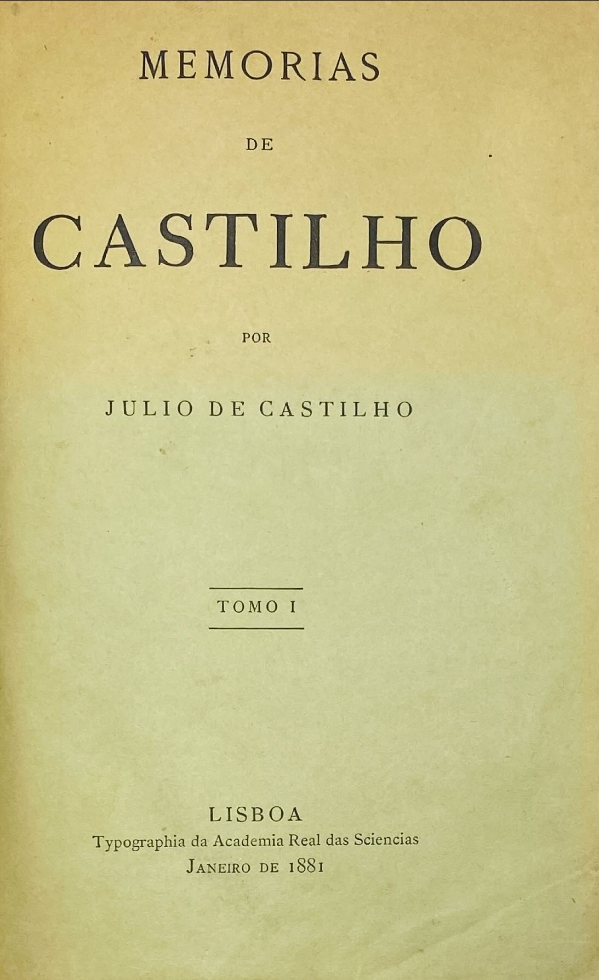 CASTILHO, Julio de. - MEMÓRIAS DE CASTILHO. Tomo I (e II). Lisboa. Typographia da Academia Real das Sciencias. 1881 2 Vols. In-8º Encs.