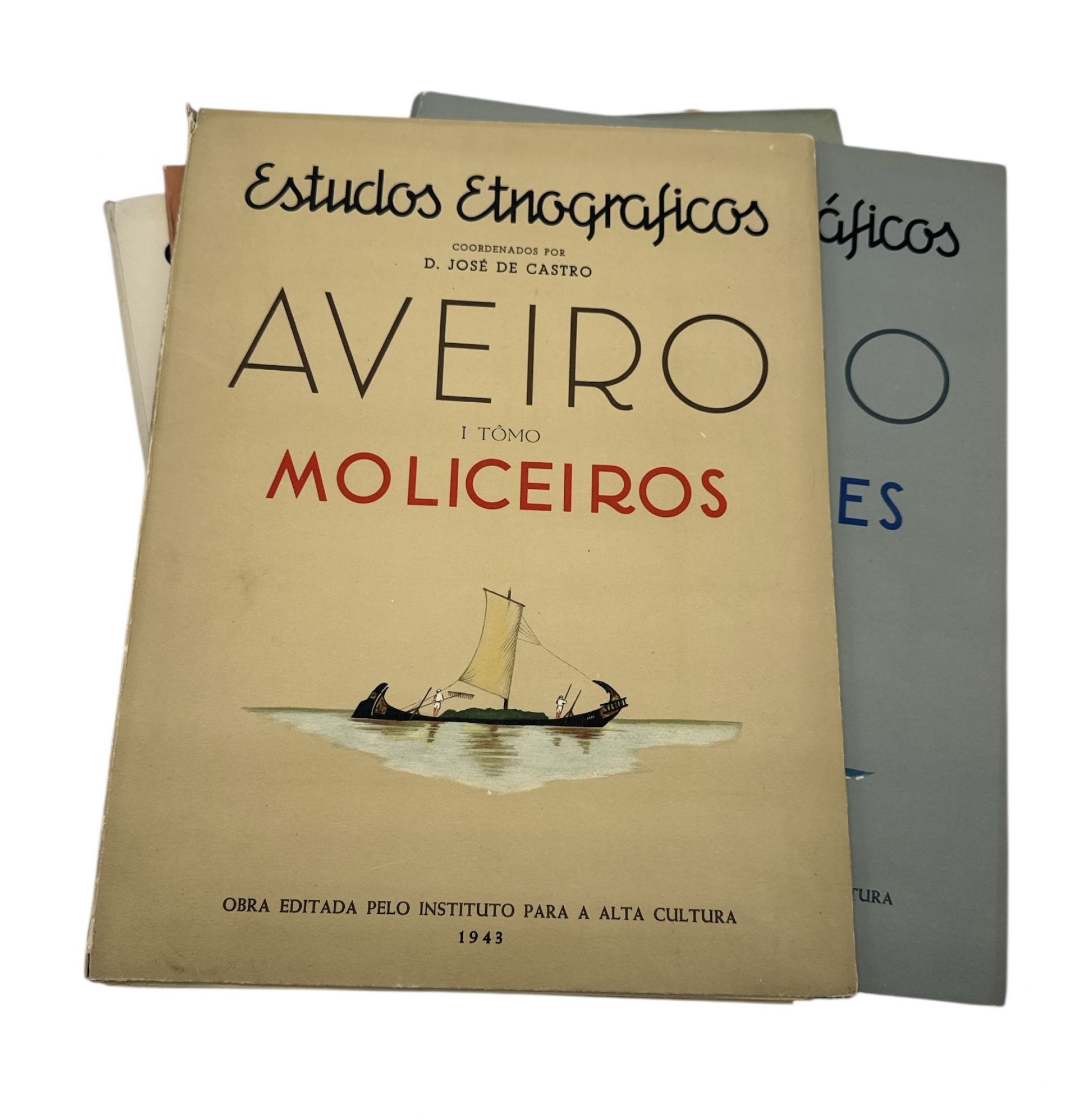 CASTRO, D. José de. - ESTUDOS ETNOGRÁFICOS. AVEIRO. I Tomo: Moliceiros. II - Pescadores. III - Lavradores. IV - Marnotos e Embarcações Fluviais. V - Primeira Parte - Industrias Populares. V - Segunda Parte - Feiras e Mercados e VI - Culto Religioso. Usos e Costumes.
