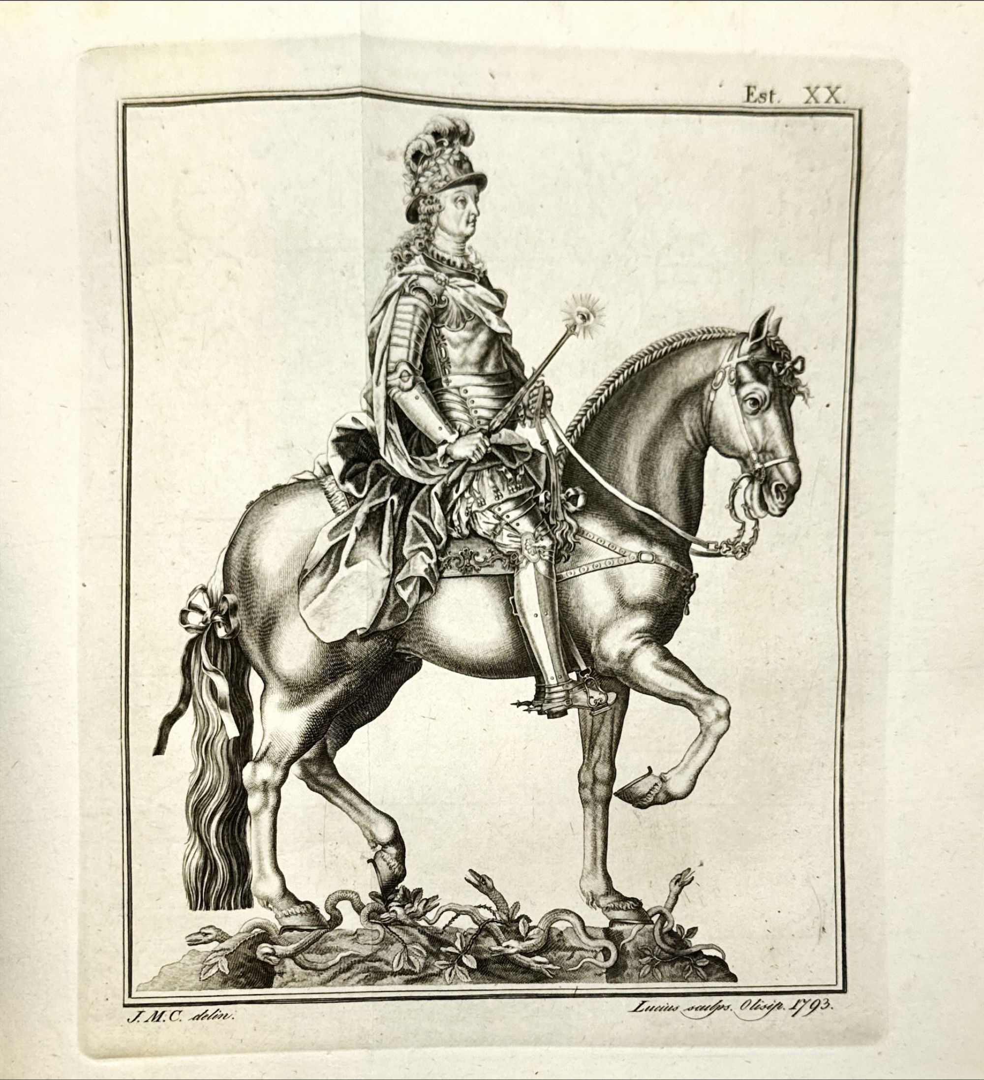 RARA. Primeira e bela edição, ilustrada com 25 gravuras em folhas desdobráveis (duas alegóricas), finamente abertas a buril em chapa de cobre. Exemplar muito bem conservado e com grandes margens. Boa encadernação mais recente em meia de pele com ferros a ouro na lombada e pastas.