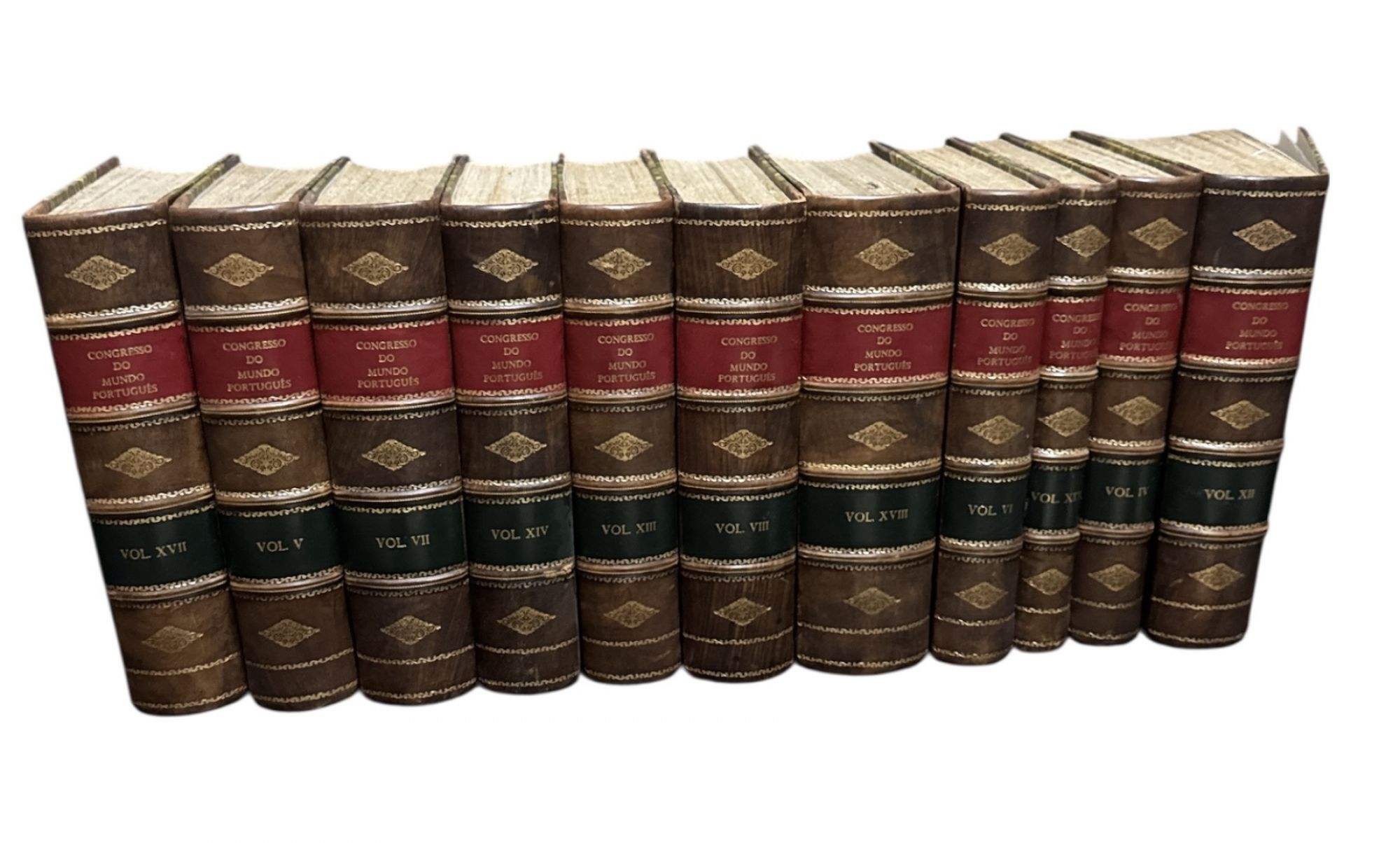 Coleção completa. Publicada pela Comissão Executiva dos Centenários. Encerra estudos sobre descobrimentos e colonização, restauração, história medieval e contemporânea, etc. Ilustrados no texto e em separado com gravuras e mapas, alguns em folhas desdobráveis. Textos de General Norton de Matos, Jaime Cortesão, Capitão Henrique Galvão. Participaram destacados estudiosos de vários países como Jacques Maritain, C. R. Boxer, John W. Blake, Mihail Manoïlesco, Georges le Gentil, P. Carlos Estermann e numerosas figuras do meio intelectual português como Hernâni Cidade, Gago Coutinho, Caetano Beirão, Joaquim Alberto Iria, Maria Josefina Andersen, D. João Evangelista de Lima Vidal, Arcebispo Bispo de Aveiro e João Ameal, etc. Muito bem conservados. Boas encadernações meias de pele. Conserva as capas de brochura e lombadas de todos os volumes.