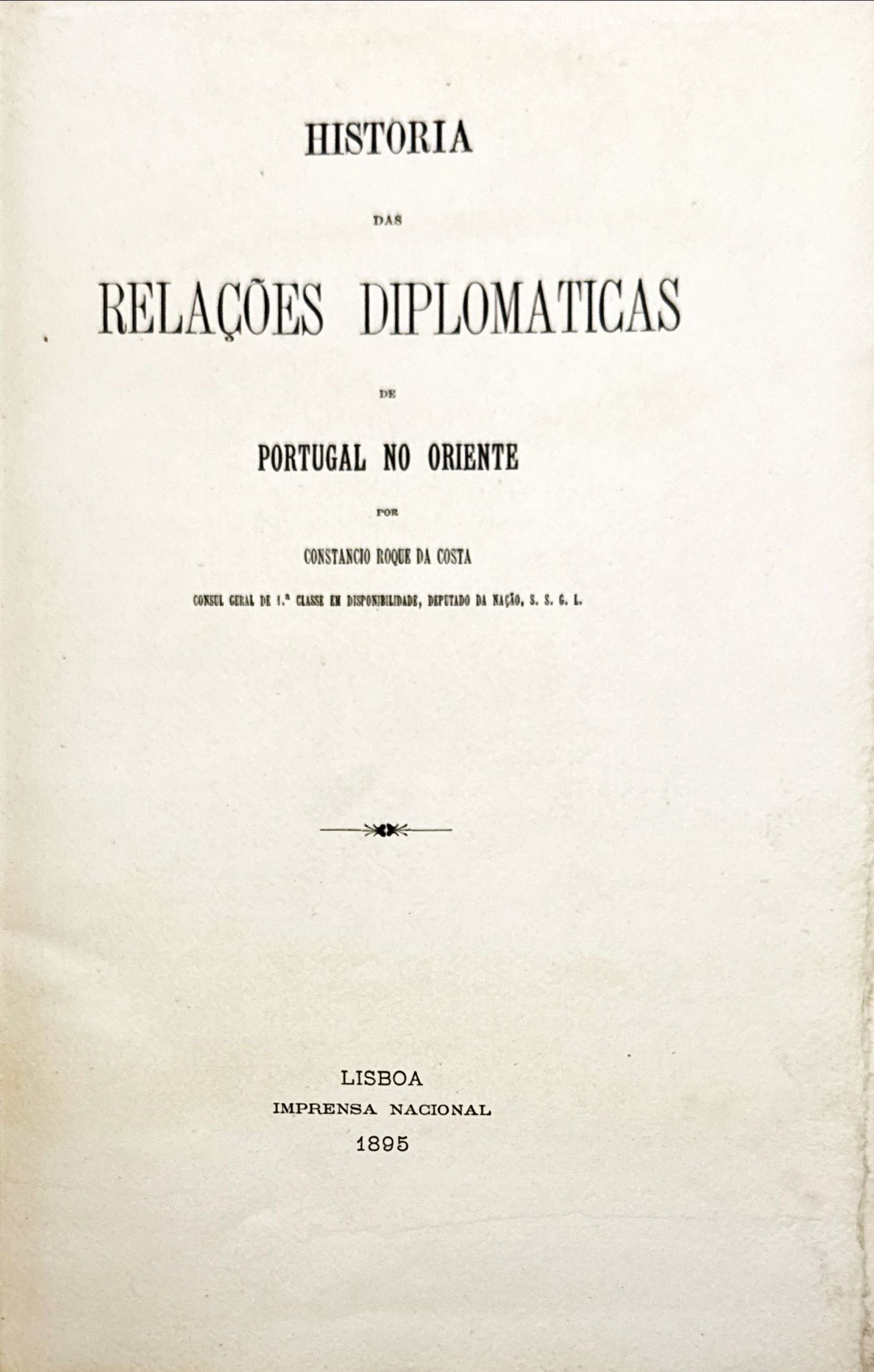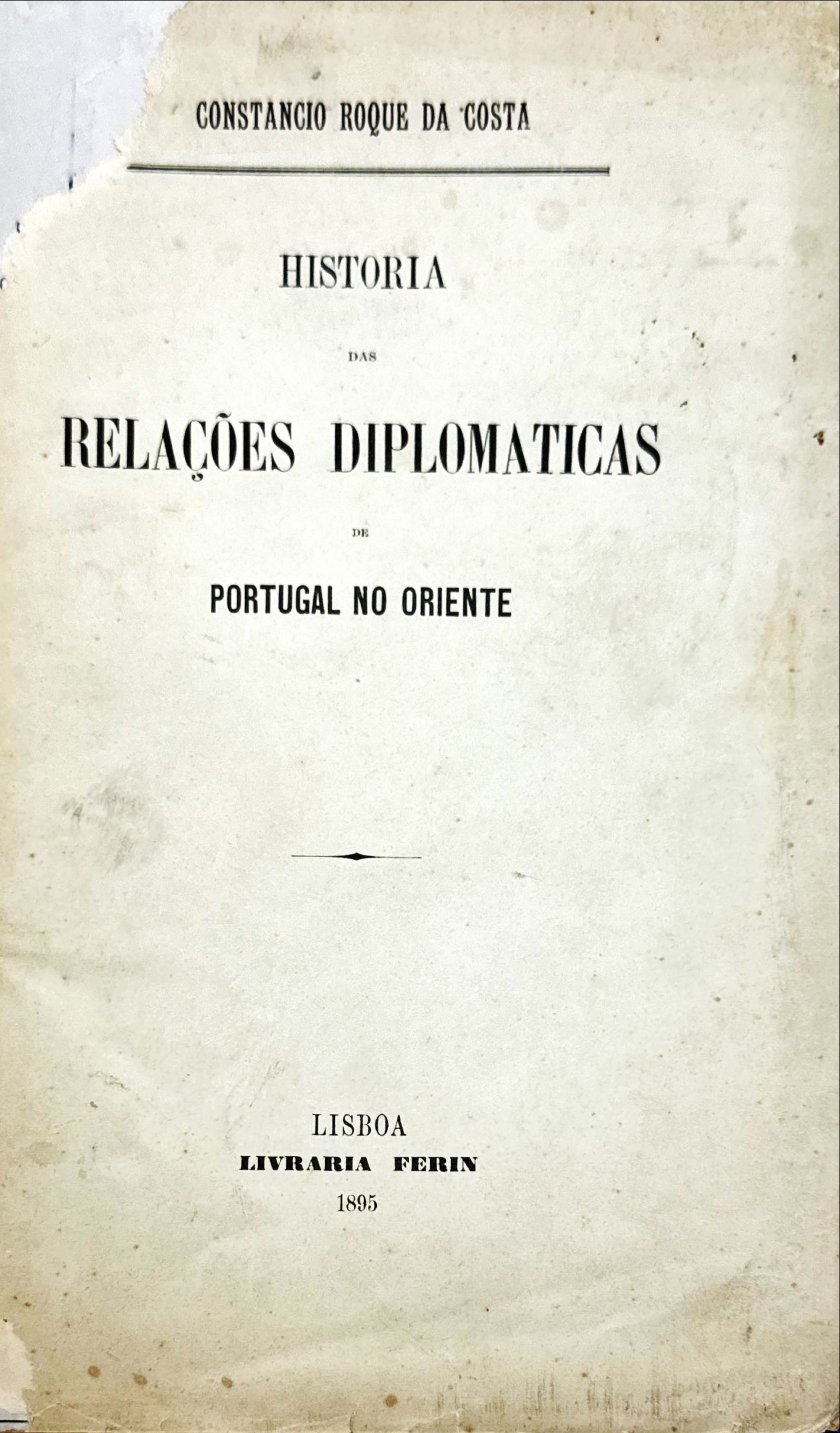 COSTA, Constancio Roque da Costa. - HISTORIA DAS RELAÇÕES DIPLOMATICAS DE PORTUGAL NO ORIENTE. Lisboa. Livraria Ferin. 1895. In-8º de 111, [1] págs. Enc.