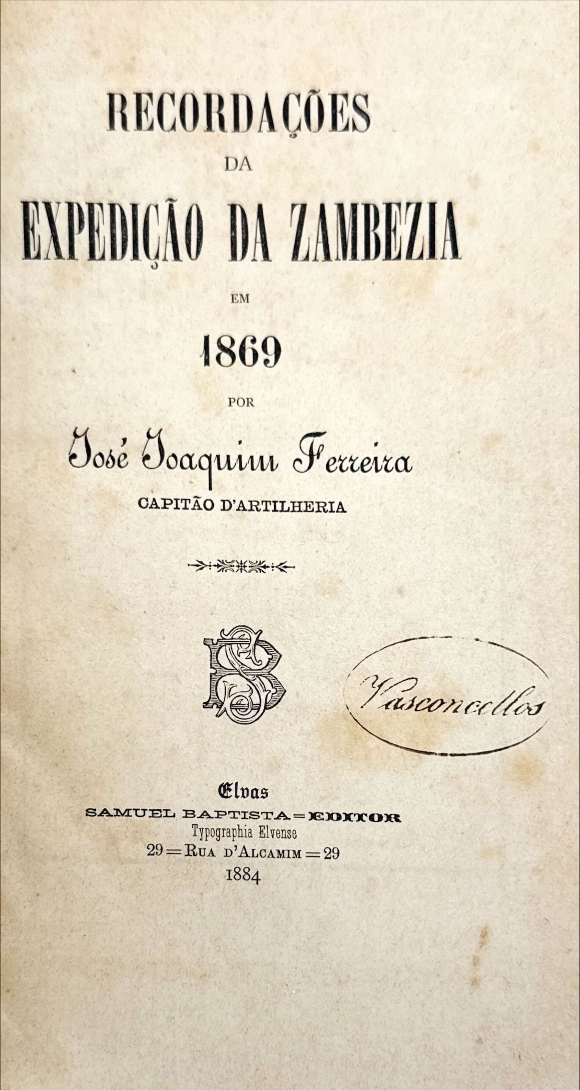 FERREIRA, José Joaquim. - RECORDAÇÕES DA EXPEDIÇÃO DA ZAMBÉZIA EM 1869. Elvas. Samuel Baptista. 1884. In-8º de 111 págs. Enc.