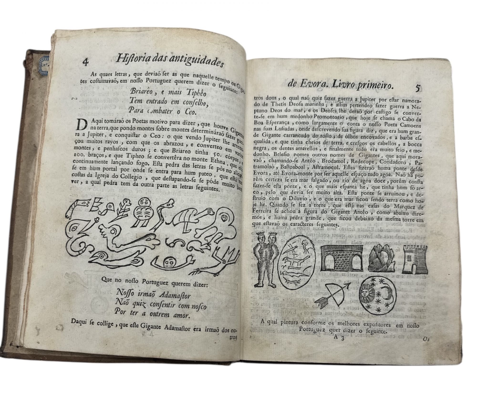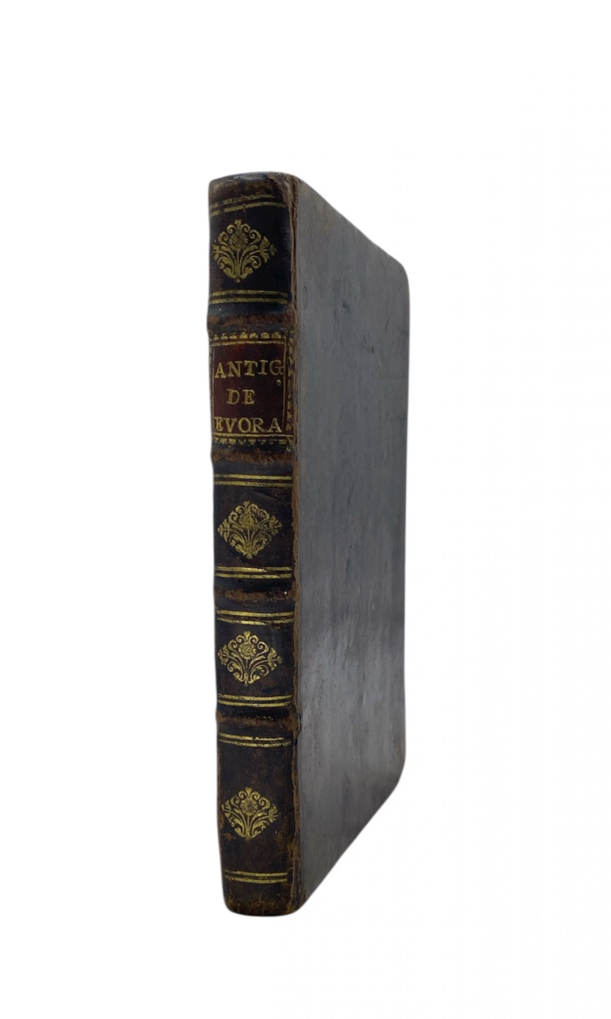 AZEVEDO, Martim Cardoso de. - HISTORIA DAS ANTIGUIDADES DE EVORA PRIMEIRA PARTE REPARTIDA EM DEZ LIVROS... por Amador Patricio. Primeira impressão, e á custa de Francisco Mendez. Evora. Na Officina da Universidade. 1739. In-8º de [22], 342, [2] págs. Enc.