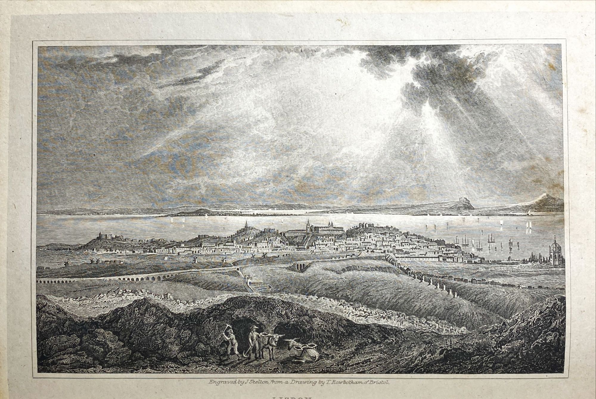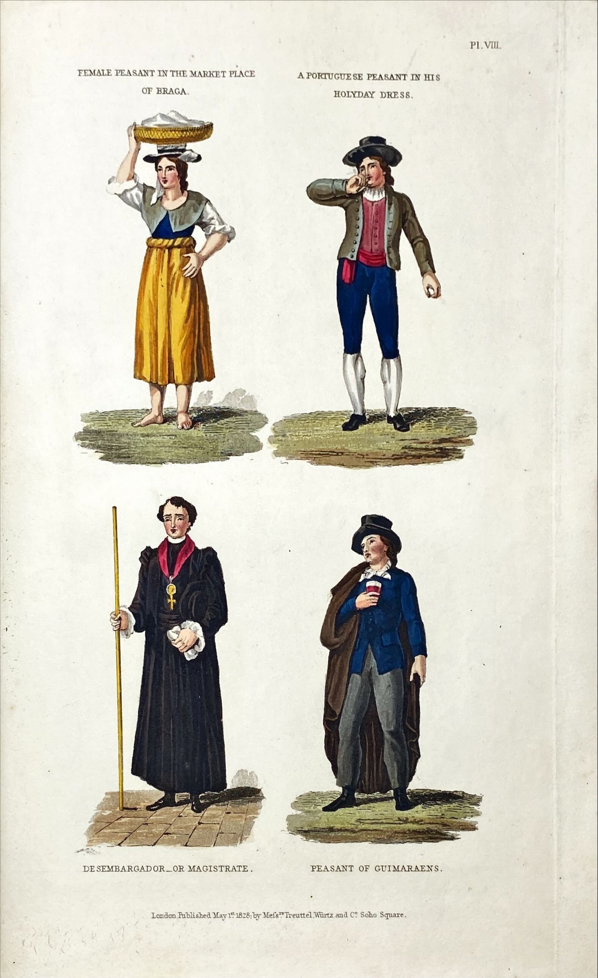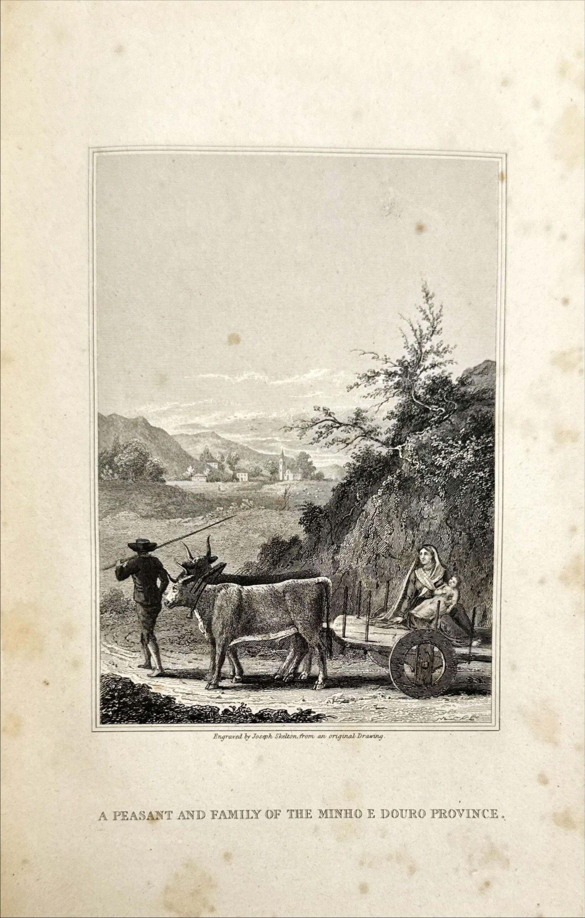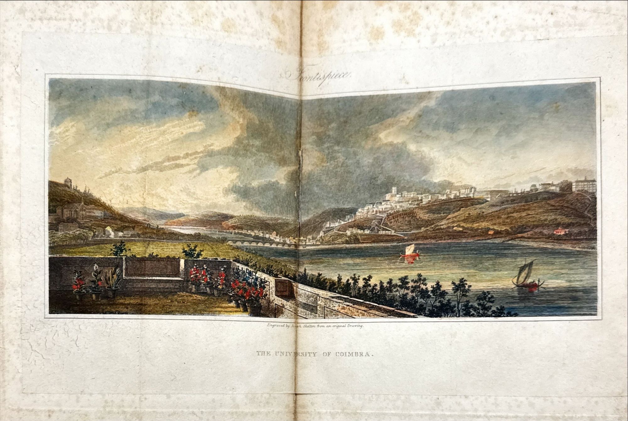Primeira Edição. De grande raridade. Ilustrada como frontispício gravado pintado à mão e 25 gravuras, que representam vistas de monumentos, usos e costumes, grafia musical, etc. As gravuras dos costumes portugueses são a cores. Exemplar com acidez no frontispício e algumas gravuras e que é costume nesta obra. Boa encadernação meia de pele com ferros a ouro na lombada e pastas. Duarte de Sousa, 385.