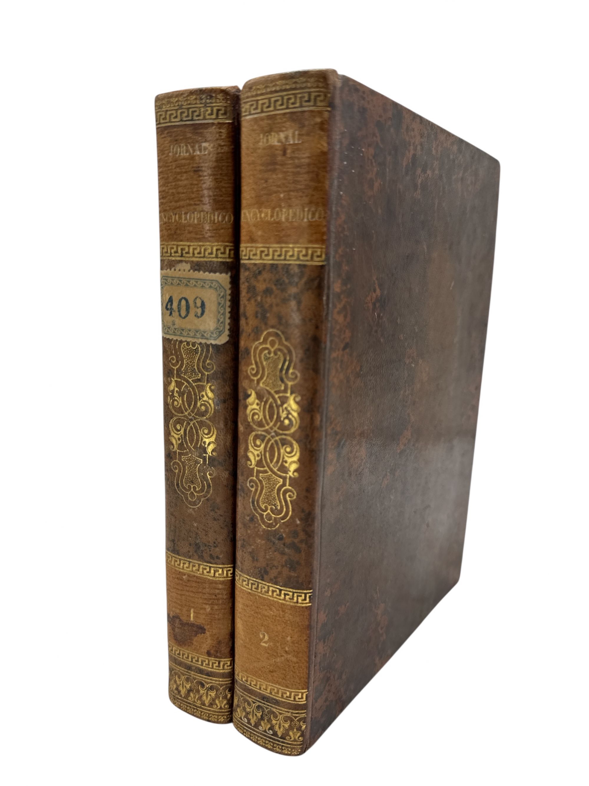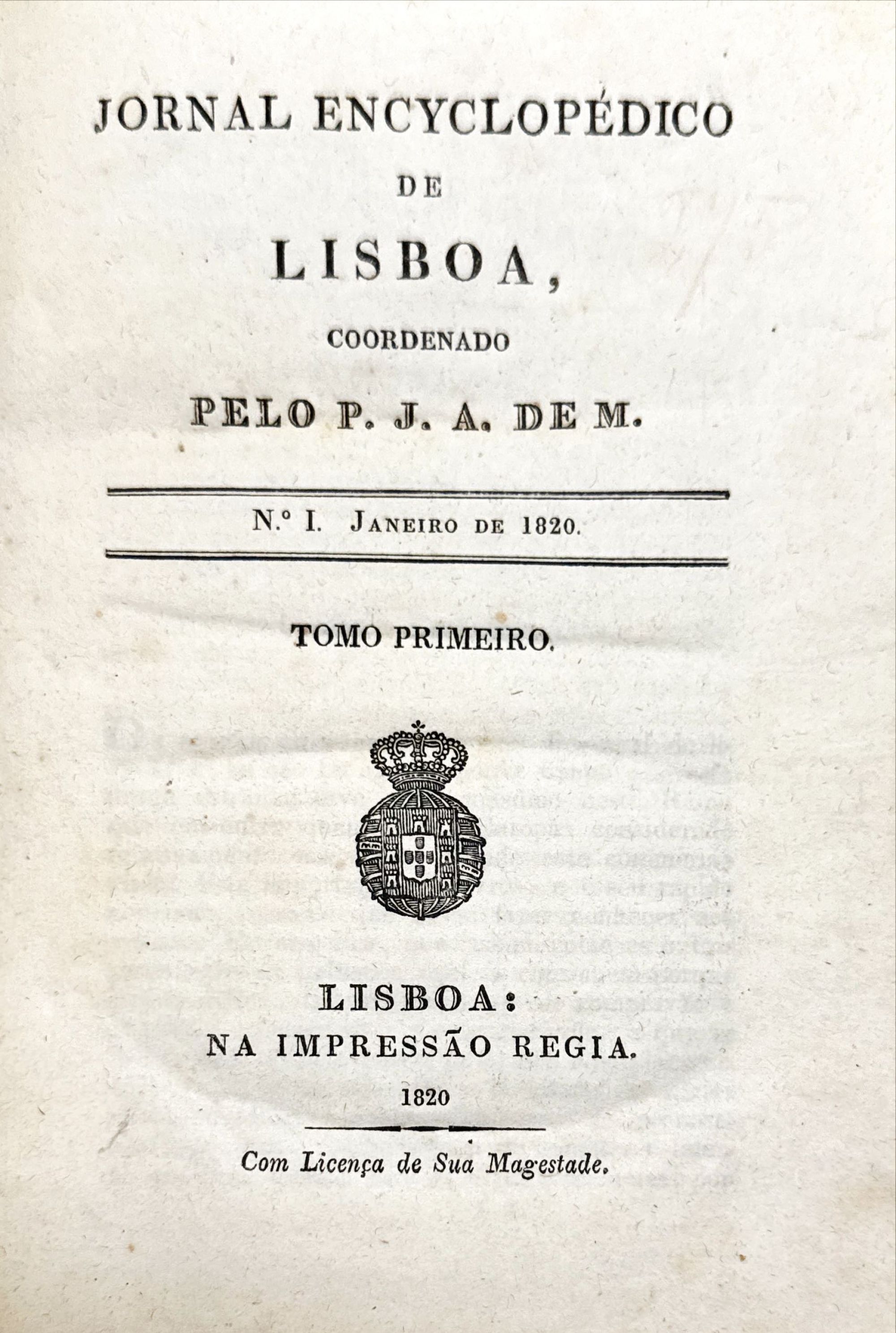 MACEDO, José Agostinho de. - JORNAL ENCYCLOPEDICO DE LISBOA. Coordenado por P. J. A. de M. (José Agostinho de Macedo). Tomo I (e II). Lisboa. Impressão Regia. 1820. 12 Nos. In-8º Encs em 2.